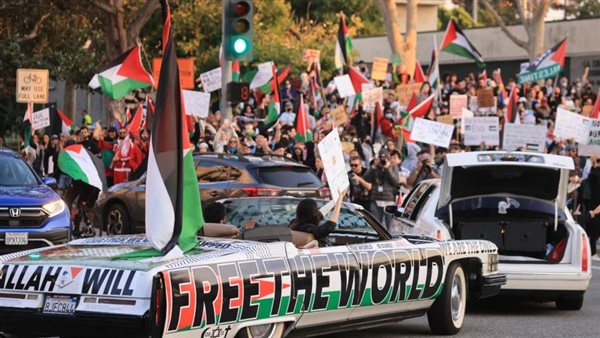 وقالت إدارة شرطة لوس أنجلوس على منصة "إكس"، المعروفة سابقا باسم (تويتر)، إنها تراقب المظاهرة غير المسموح بها وحثت المواطنين على مراقبة الآخرين في الشارع.