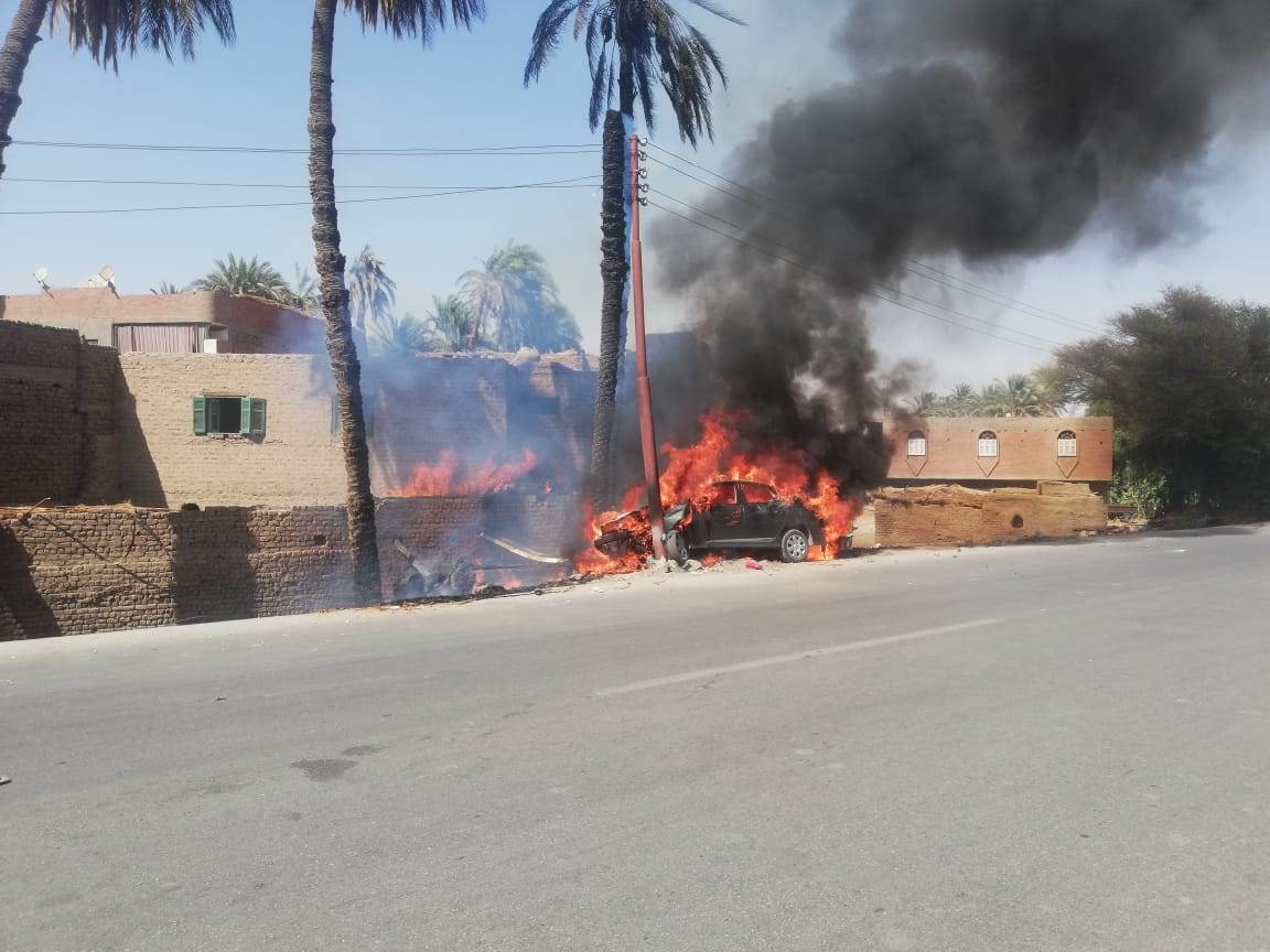 اشتعلت النيران بسيارة خاصة ببنك مصر إثر اصطدامها بنخلة، مساء اليوم الثلاثاء، على طريق قرية الشغبة التابعة إلى مركز أسيوط.