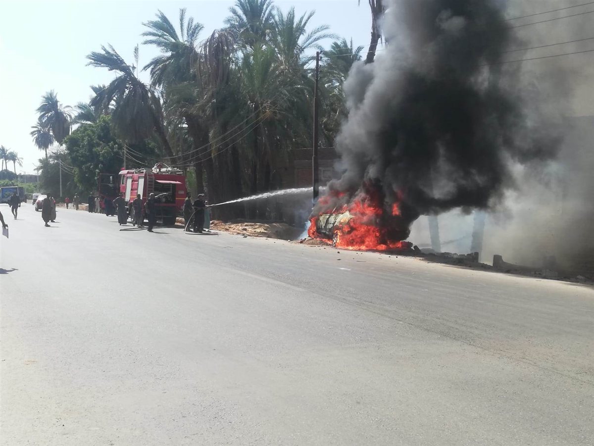 اندلاع حريق في سيارة تابعة لأحد البنوك بأسيوط .. "صور"
