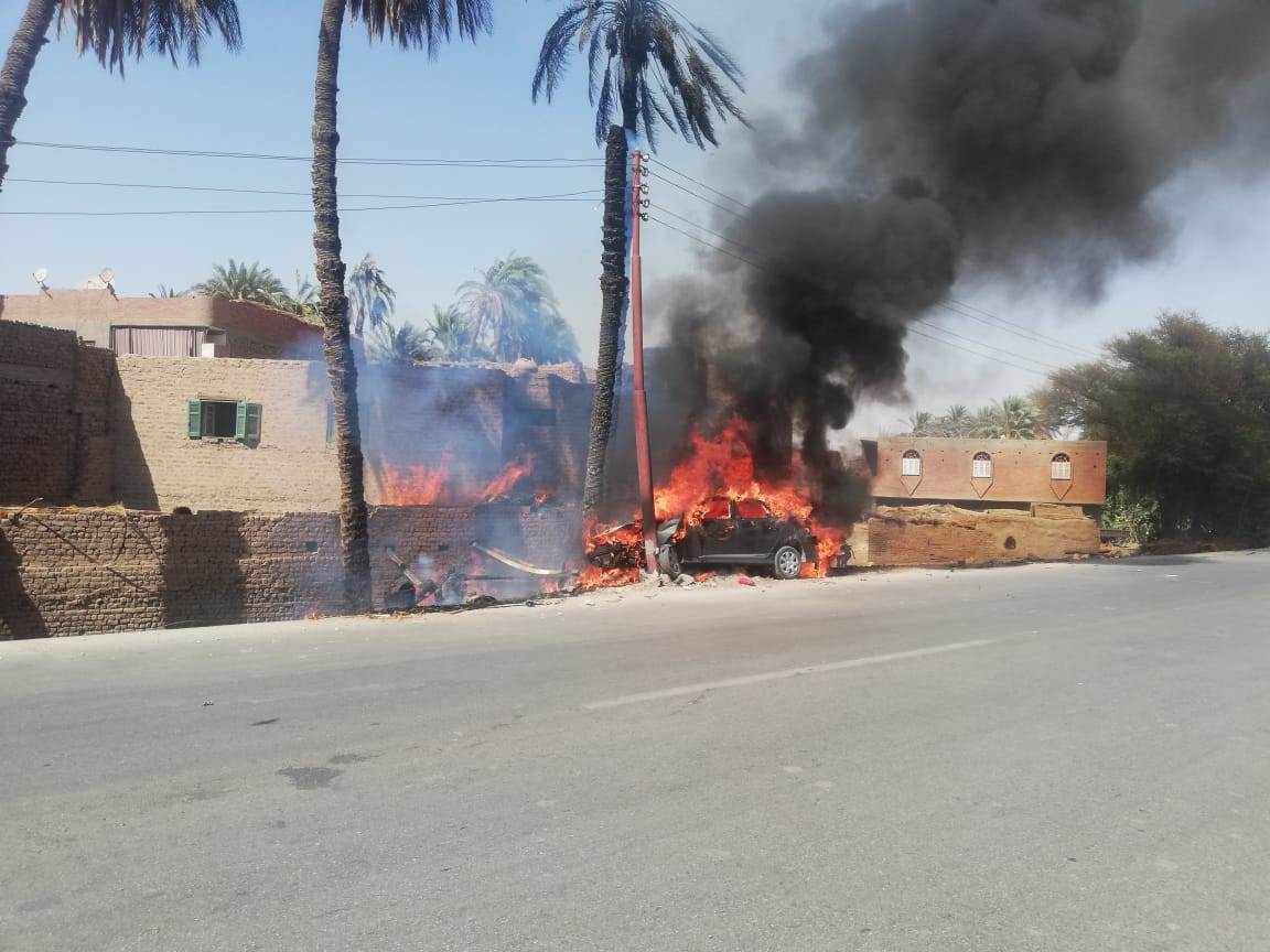 انتقل على الفور لموقع البلاغ؛ قوات الأمن والشرطة وضباط المباحث وسيارة الإسعاف والإطفاء، وبالفحص والمعاينة تبين اشتعال النيران بسيارة خاصة ببنك مصر تحمل لوحات معدنية رقم"1837 ي د س"، بقيادة محمد. م. ت، وتمكنت الحماية المدنية والإطفاء من السيطرة على الحريق دون وقوع خسائر بشرية أو خسائر في الأرواح.