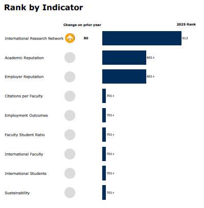 وأضاف أن الجامعة حققت تميزاً جديداً في مؤشر السمعة الأكاديمية عالمياً وحصلت علي المركز 979 عالمياً، بتقدم الجامعة بمعدل 73 مركزاً، مقارنةً بالعام السابق، حيث حصلت على المركز 1052عالمياً في هذا المؤشر ضمن 1519 جامعة على مستوى العالم، كما أظهر التصنيف تقدم الجامعة في مؤشر السمعة التوظيفية عالمياً، وحصلت على المركز 1071 عالمياً بتقدم بمعدل 91 مركزاً مقارنةً بالعام السابق، حيث حصلت على المركز 1162 عالمياً، كما أظهر التصنيف تقدمها فى مؤشر حجم الاستشهادات من الأبحاث بالنسبة لأعضاء هيئة التدريس تقدماً كبيراً، وحصلت علي المركز الثالث محلياً وأيضاً تقدم الجامعة بأكثر من 80 مركزاً عالمياً في مؤشر شبكة الأبحاث المنشورة بين باحثين ينتمون إلى أكثر من دولة هذا العام، حيث حصلت الجامعة علي المركز513 عالمياً، بينما كانت في المركز 593 عالمياً العام الماضي.