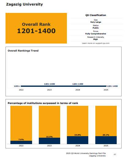 جامعة الزقازيق تتقدم عالميًا وتحقق تميزًا جديدًا في مؤشرات تصنيف QS لعام 2025
