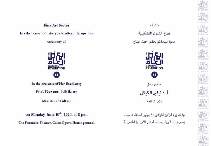 تفتتح الدكتورة نيفين الكيلاني، وزيرة الثقافة، فعاليات الدورة الـ44 للمعرض العام، غدًا الاثنين 10 يونيو 2024، في الثامنة مساءً، على مسرح النافورة، بساحة دار الأوبرا المصرية.