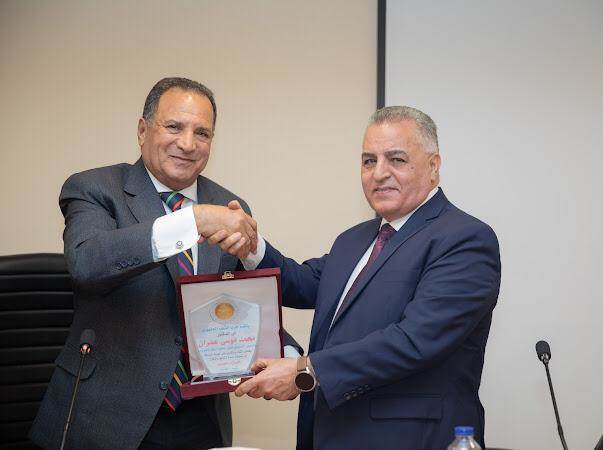 من جانبه؛ قدم اللواء محمد صلاح أبو هميلة، درع تكريم إلى الدكتور محمد موسى عمران، تقديرًا لجهوده ودوره الفعال داخل الجهاز.