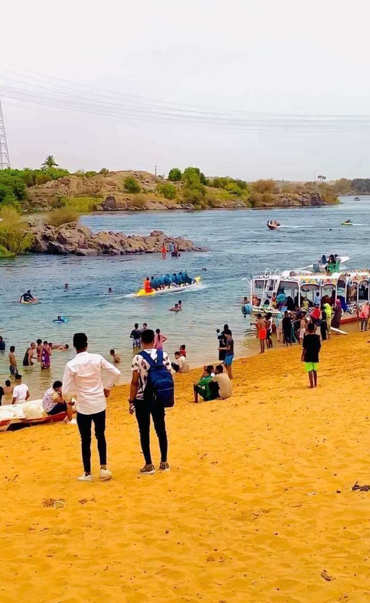 الشواطئ النيلية تحظى بتوافد مواطني أسوان في أول أيام العيد
