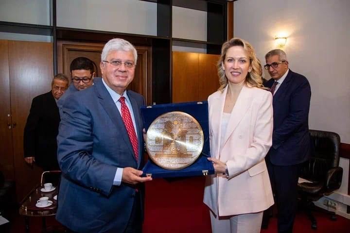 التقى الدكتور أيمن عاشور، وزير التعليم العالي والبحث العلمي، السيدة تاتينا انوتولوليڤنا ترنتييڤا نائب المدير العام لمؤسسة "الروس آتوم" الروسية الرائدة في التكنولوجيا النووية والوفد المرافق لها، وذلك على هامش مُشاركته في فعاليات الاجتماع الحادي عشر لوزراء التعليم العالي في الدول أعضاء تجمع البريكس، الذي عُقد بمدينة كازان الروسية، بحضور الدكتور مصطفى رفعت أمين المجلس الأعلى للجامعات، والدكتور شريف صالح القائم بأعمال رئيس قطاع الشؤون الثقافية والبعثات، والدكتور محمد السرجاني الملحق الثقافي المصري ومدير البعثة التعليمية في روسيا، والدكتور صالح هاشم أستاذ اللغة الروسية ورئيس جامعة عين شمس الأسبق.