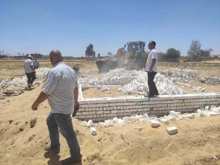 - 3 حالات تعد بمساحة 950 م2 عبارة عن أسوار طولية وعرضية بالطوب الأبيض والمون الأسمنتية وردم حفر بالدلنجات.
