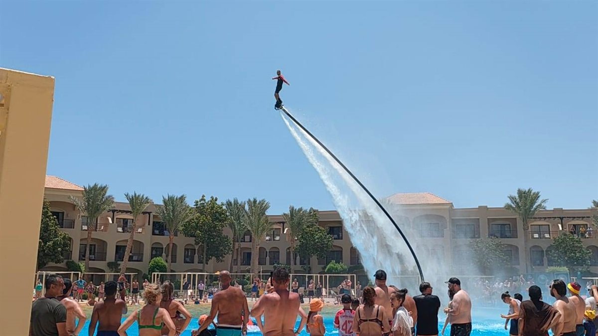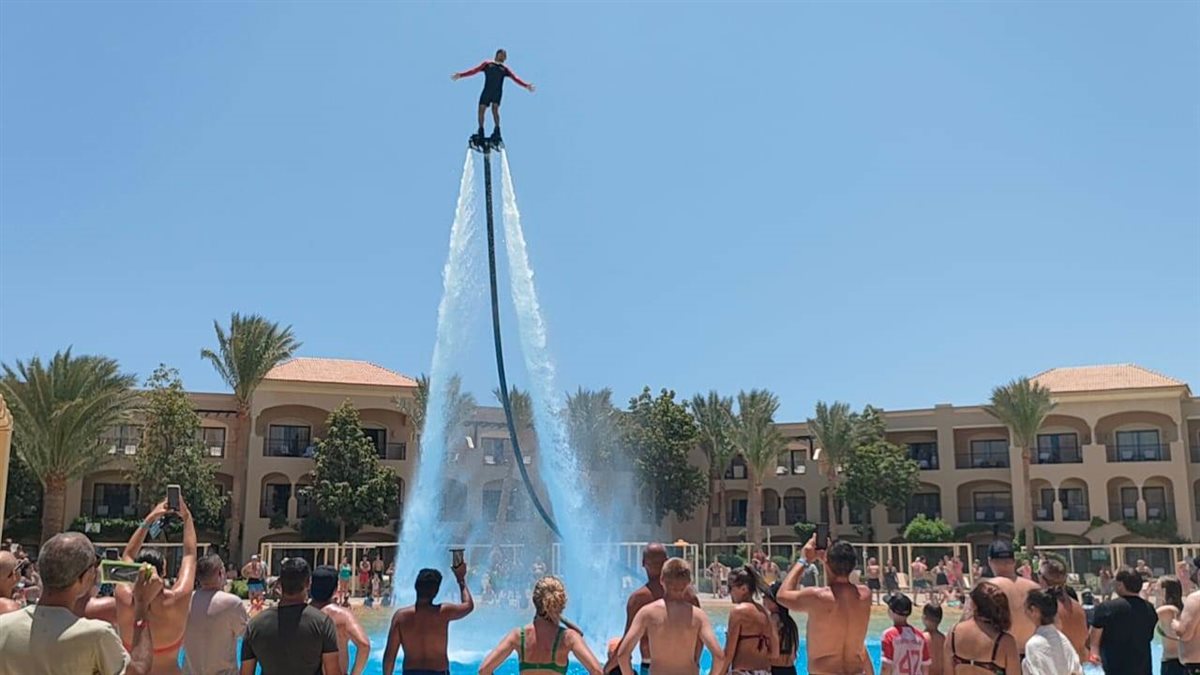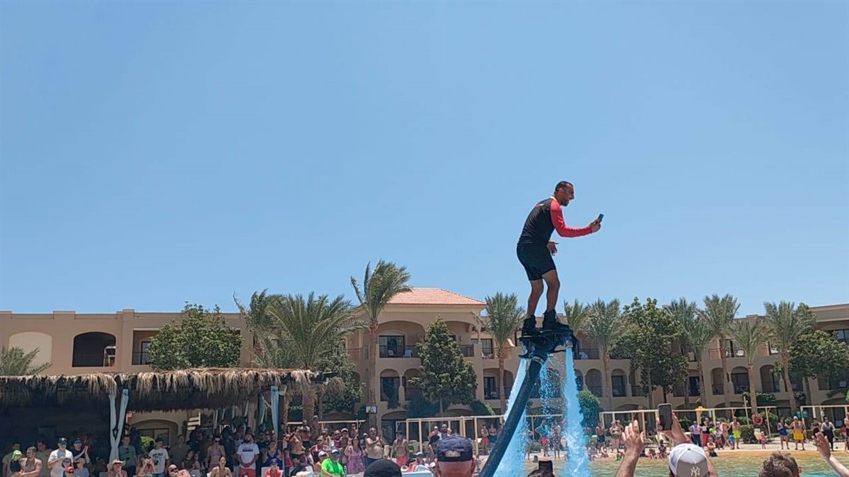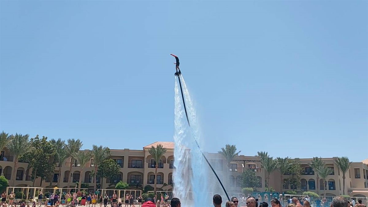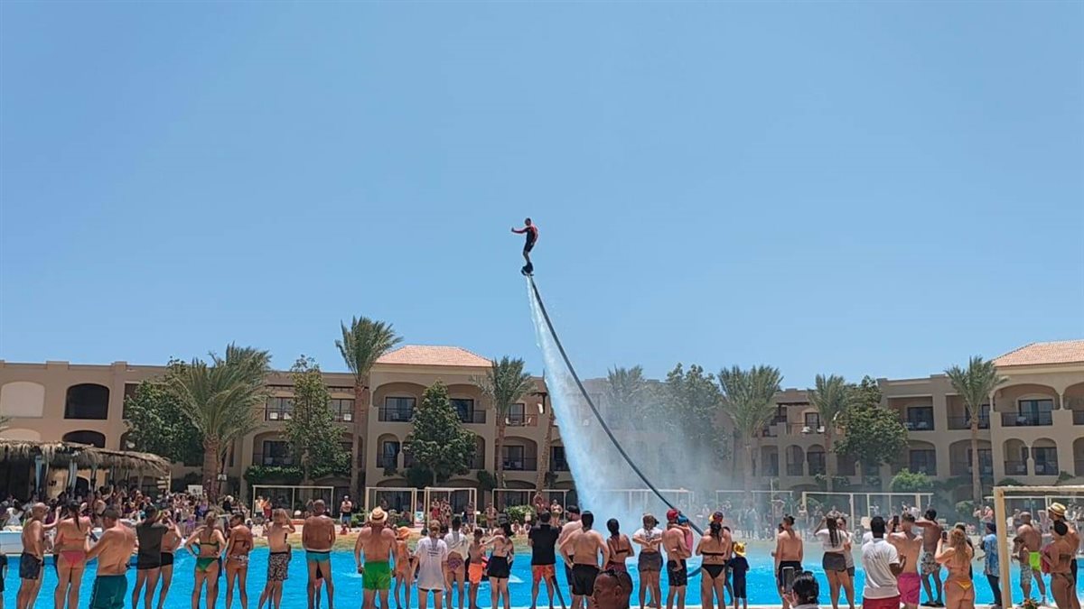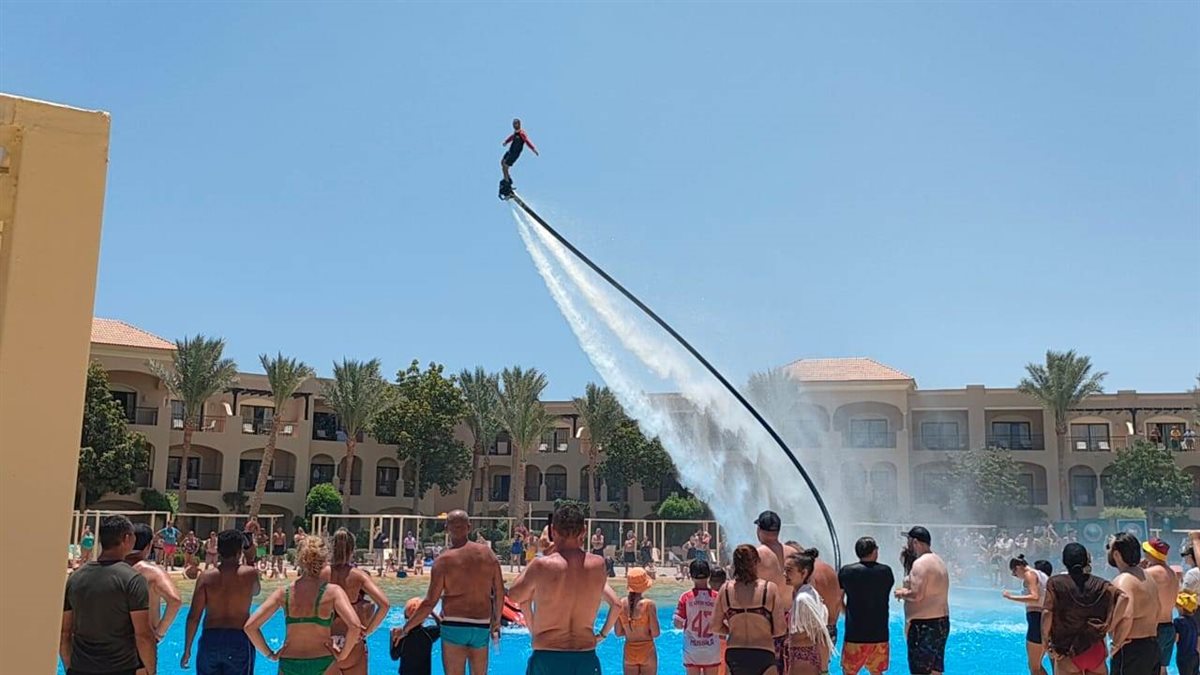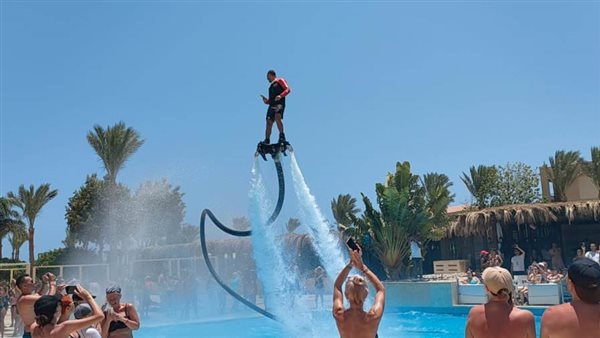 جذبت الألعاب المائية آلاف السياح من المصريين والأجانب على الشواطئ تزامنا مع ارتفاع درجة الحرارة منذ بدء موسم الصيف الجاري حيث حرصت الفنادق السياحية على جذب السياح من خلال لعبة الفلاي بورد على حمامات السباحة ولاقى ذلك قبول واعجاب السياح الذين تفاعلوا وحرصوا على التقاط الصور التذكارية ونشرها على السوشيال ميديا.
