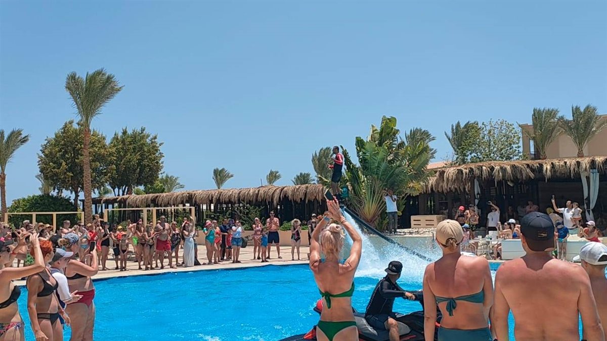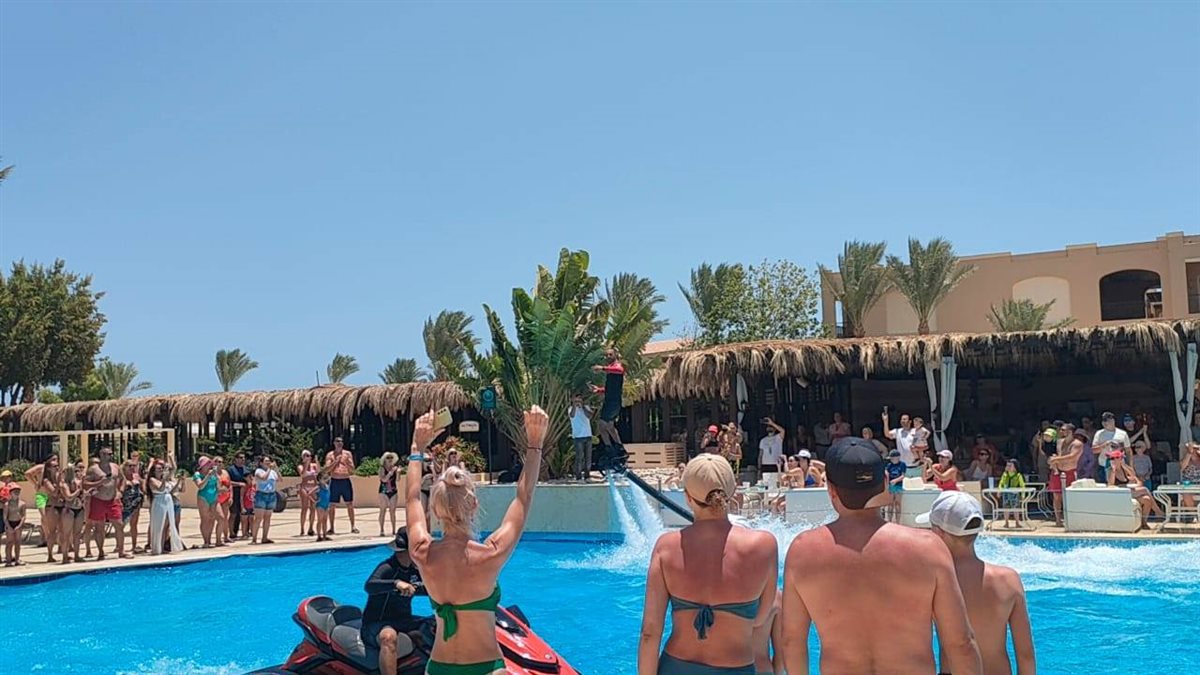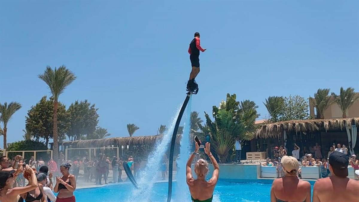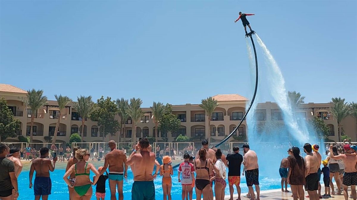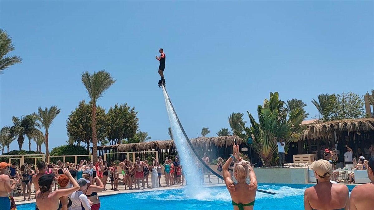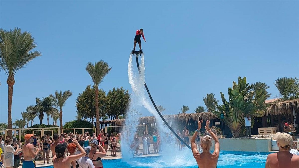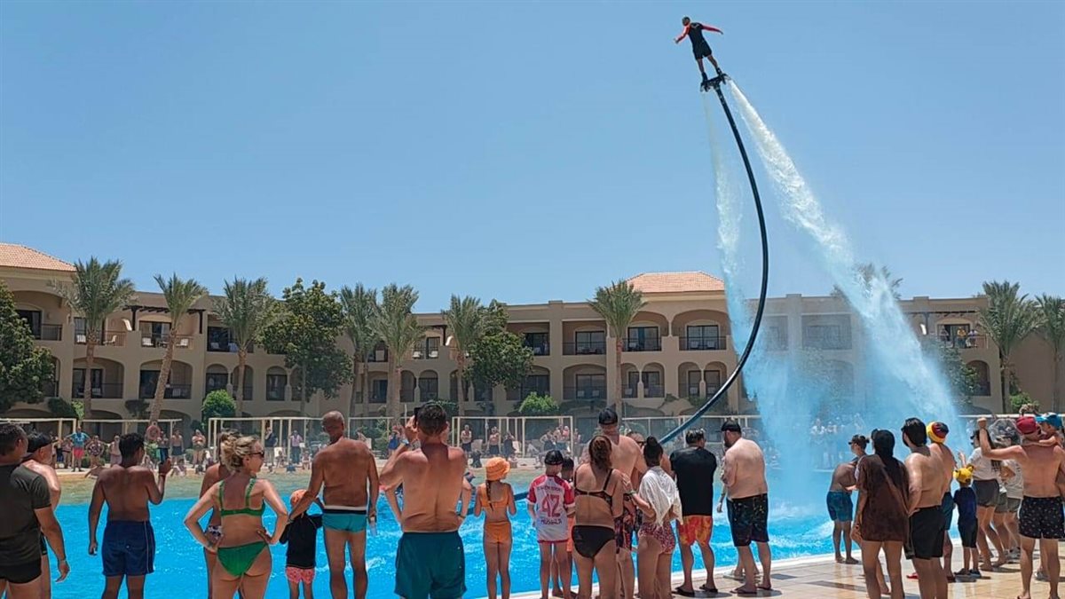 جذبت الألعاب المائية آلاف السياح من المصريين والأجانب على الشواطئ تزامنا مع ارتفاع درجة الحرارة منذ بدء موسم الصيف الجاري حيث حرصت الفنادق السياحية على جذب السياح من خلال لعبة الفلاي بورد على حمامات السباحة ولاقى ذلك قبول واعجاب السياح الذين تفاعلوا وحرصوا على التقاط الصور التذكارية ونشرها على السوشيال ميديا.