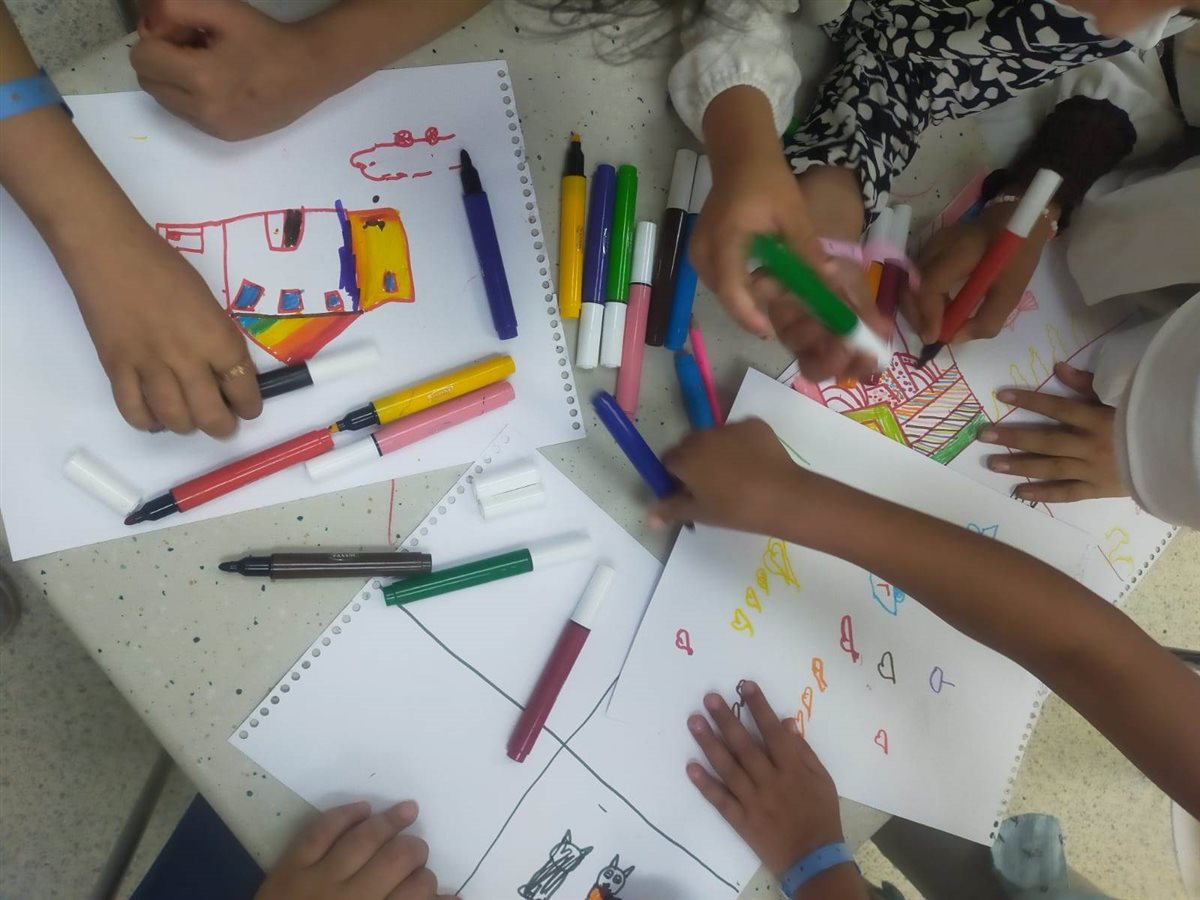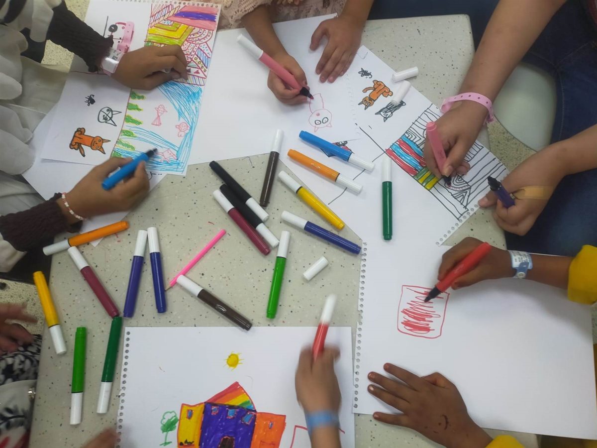 وفي مستشفى 57357 للأطفال، أقيمت ورشة فنون تشكيلية للرسم الحر باستخدام ألوان الفلوماستر وورق الكانسون، وصاحبت الزيارة المكتبة المتنقلة التي استضافت الأطفال في ورشة قراءة وحكي عن الهجرة النبوية.