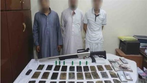 عقب تقنين الإجراءات أمكن ضبطهم، وبحوزتهم (100 آلف قرص لعقار الترامادول المخدر - مبلغ مالي - 8 هواتف محمولة - عدد 3 سيارات).