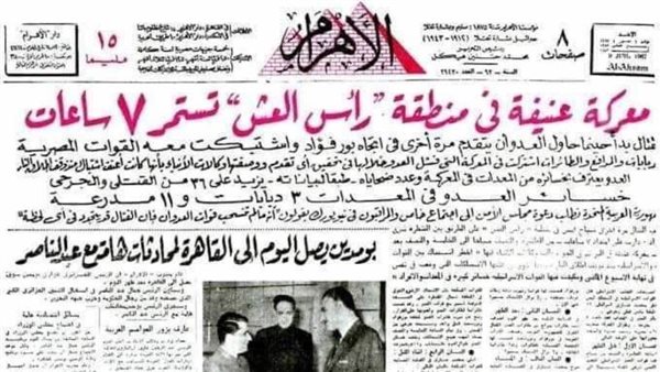 وفي اليوم التالي، خرجت الصحف المصرية، تروي تفاصيل المعركة، حيث نشرت صحيفة الأهرام على صدر صفحتها الأولى تقريرًا صحفيًا تحت عنوان "معركة عنيفة في رأس العش تستمر ٧ ساعات".
