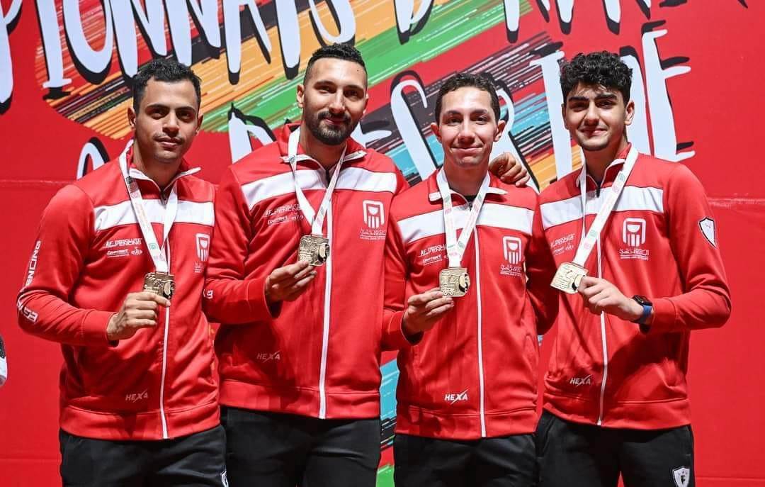 ويقود فريق سلاح سيف المبارزة المدربان ساندرو كومو وسيد سامي.