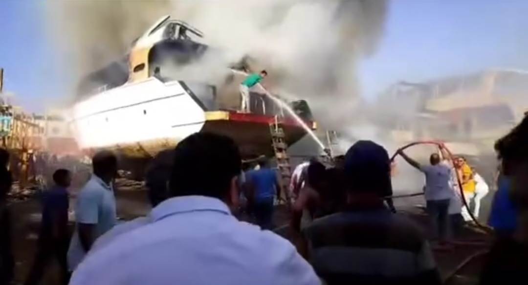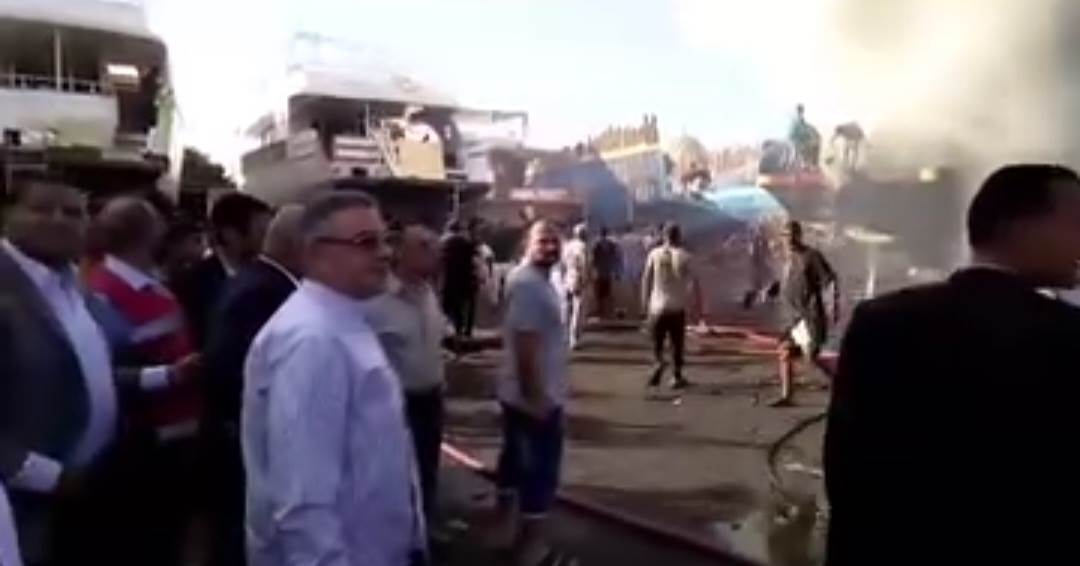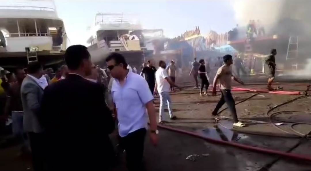 توجه اللواء عمرو حفنى محافظ البحر الأحمر واللواء محيي سلامة مدير الأمن يرافقهم اللواء تامر سمير رئيس الإدارة المركزية لشؤون مكتب المحافظ الى الأزق الخاص بصناعة وصيانة اليخوت واللنشات السياحية بجوار جامع الميناء بمنطقة السقالة فور علمه بنشوب حريق بمركبين فى مرحلة التجهيز بالمنطقة.