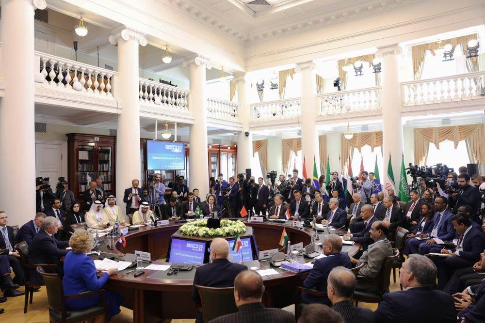 خلال الكلمة، شدد المستشار الدكتور حنفي جبالي على أن الآمال تُعقد على تجمع بريكس ليضخ دماء جديدة في شرايين النظام العالمي لمواجهة تحديات العصر الراهن ودفع أطر وآليات التعاون الدولي إلى آفاق أكثر رحابة وتعزيز صوت الدول الناشئة في عملية صنع القرار العالمي، مؤكداً أن برلمانات دول تجمع بريكس يقع على عاتقها مسؤولية تنسيق الرؤى المُشتركة إزاء القضايا العالمية المختلفة في المحافل البرلمانية الدولية والإقليمية للدفع باتجاه إصلاح حقيقي لمؤسسات النظام الدولي الرئيسية لتكون أكثر إنصافاً وعدلاً.