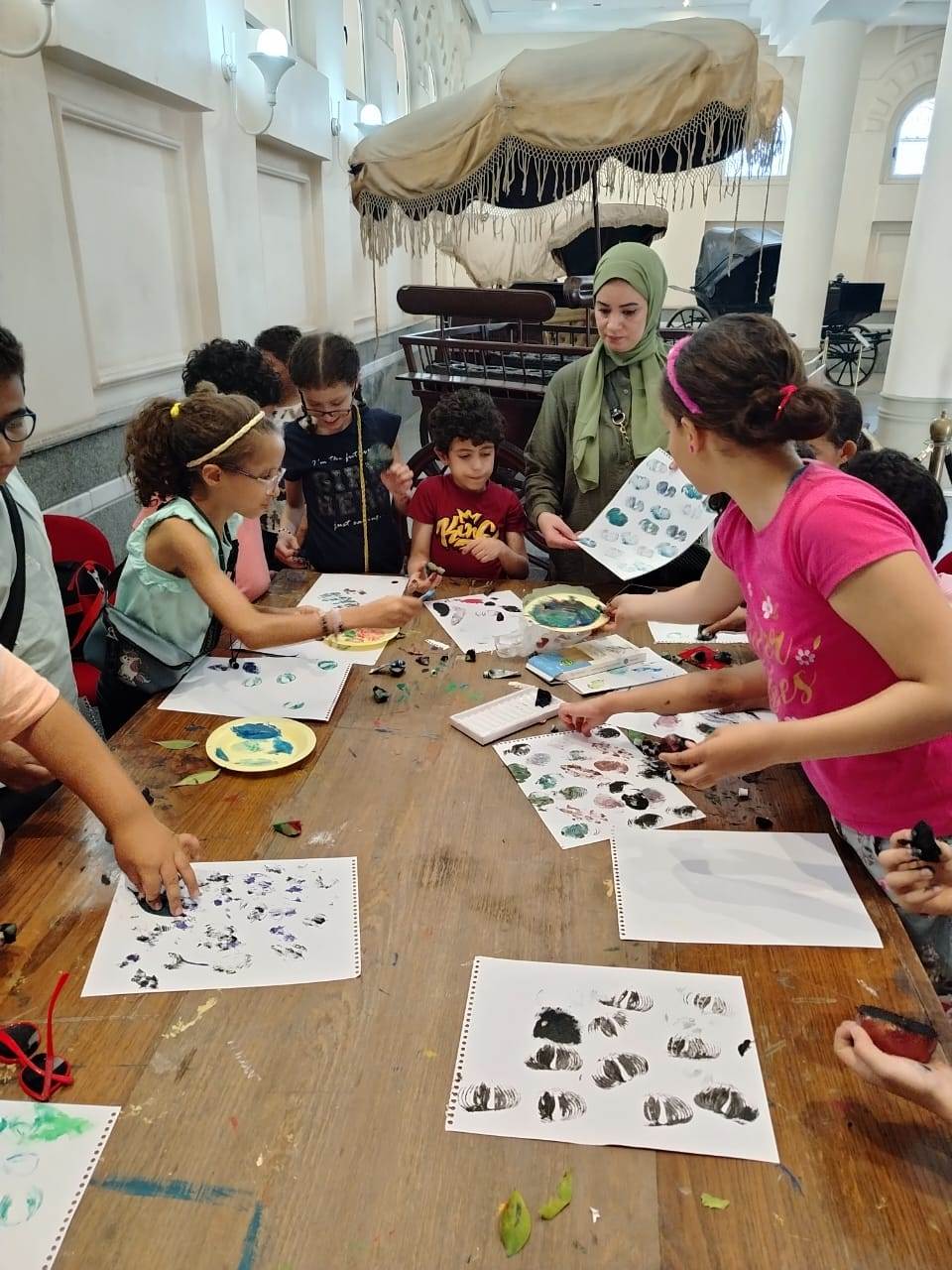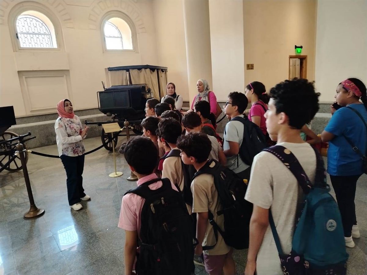 بدأت الجولة بتفقد الأطفال لمعروضات المتحف، ويضم المتحف عددا من العربات المختلفة في العصر الملكي وما قبله وعصر محمد علي، وتعرفوا على أنواع المركبات الملكية، بالإضافة لمجموعة من المجوهرات الملكية وبعض الأثاث الخاص بالفترة الخديوية، وصور بعض أفراد أسرة محمد علي.