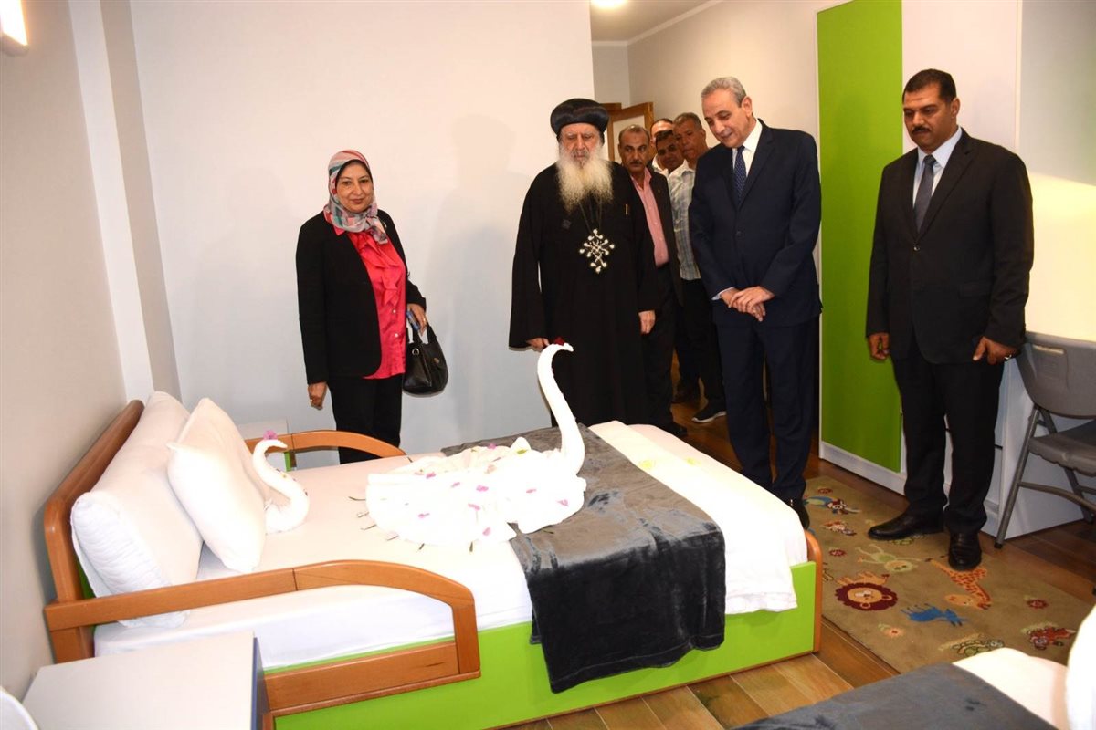 وتفقد المحافظ ، أقسام الاشغال الفنية والموسيقى والفنون والعيادات والتخاطب ورسم المونتيسوري والمطبخ غرفة الألعاب وغرفة التنمية الحسية والحركية، وأشاد المحافظ بالمبنى والذي يشمل جميع مستلزمات التأهيل بكافة أنواعه الحسي والحركي والتخاطب، بالإضافة إلي تفقده غرف السكن المجهزة بأعلى مستوى فندقي لخدمة أبطال ذوي القدرات الخاصة بالإضافة إلي مشاركة المقيمين والمترددين من متلازمة داون بما يناسبهم من أنشطة فنية وموسيقية وثقافية ورياضية، فضلا عن الحدائق وملاعب مفتوحة.