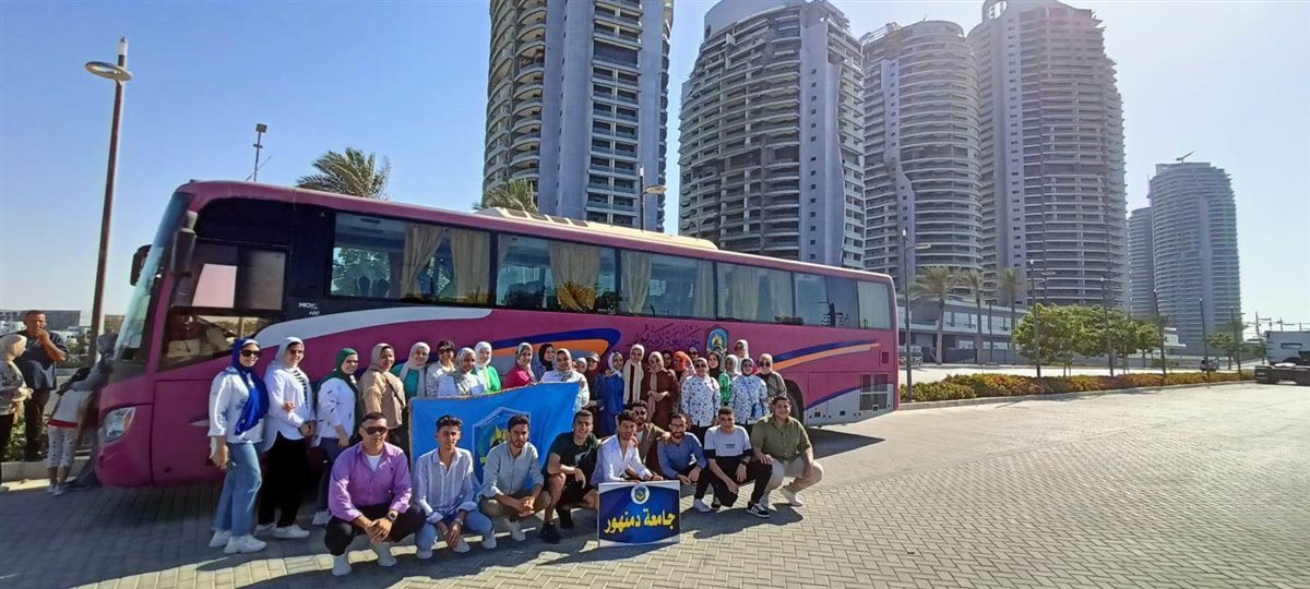 انطلاق أولى الوفود الطلابية لجامعة دمنهور للمشاركة في فعاليات مهرجان "العالم علمين"