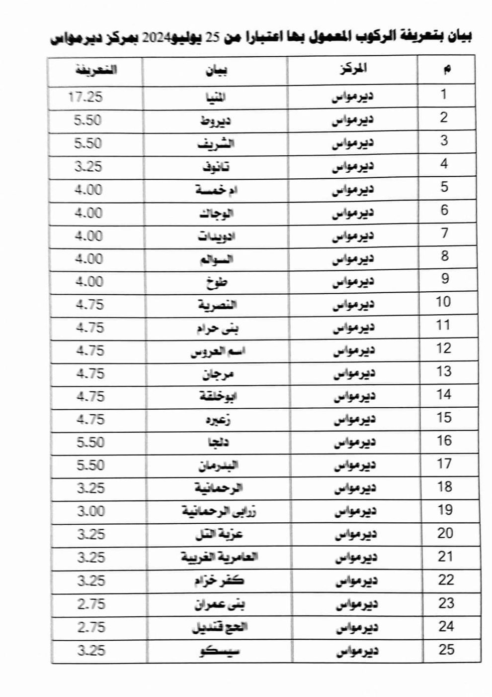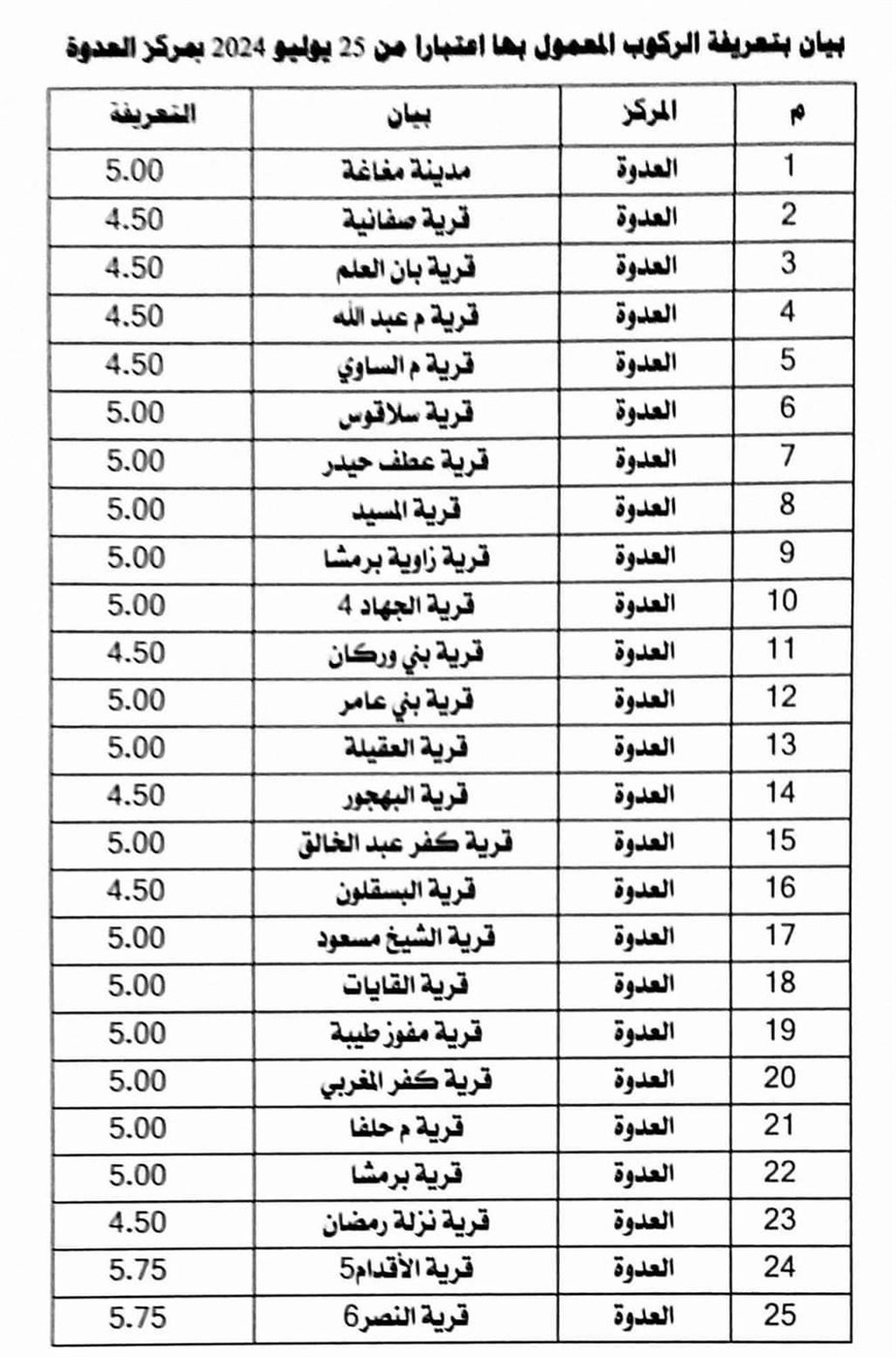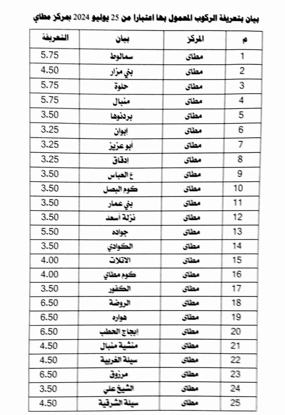 تعرف على تعريفة الركوب الجديدة لجميع خطوط النقل بمحافظة المنيا