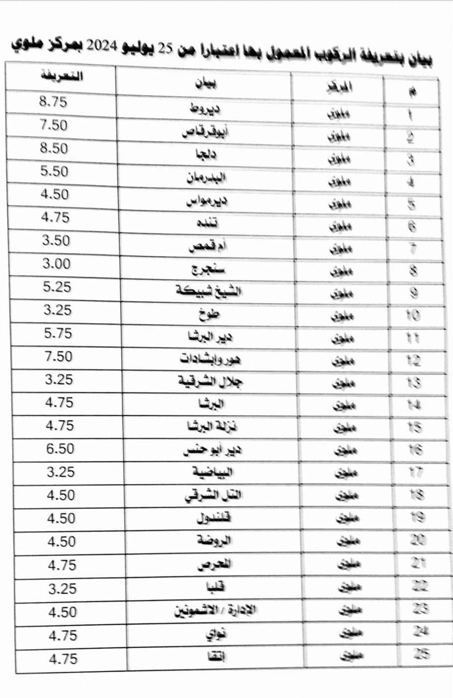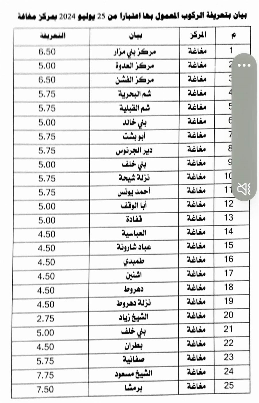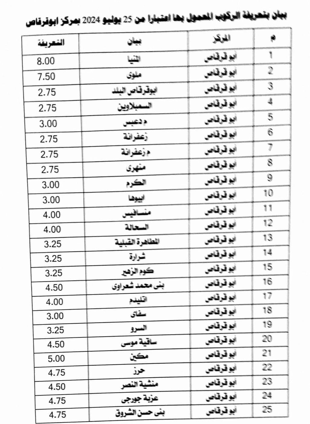 تعرف على تعريفة الركوب الجديدة لجميع خطوط النقل بمحافظة المنيا