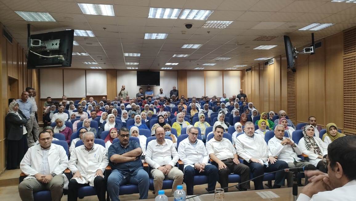 وصرّح المتحدث الرسمي باسم الوزارة أنه في سياق متصل عقد الدكتور علاء محمد الديب مدير المركز الطبي التخصصي للإنتاج الحربي لقاء مع العاملين استهله بكلمة افتتاحية توجّه خلالها باسم كل العاملين بالتهنئة للمهندس محمد صلاح الدين مصطفى وزير الدولة للإنتاج الحربي لتجديد الثقة بسيادته من قبل القيادة السياسية لتولي مهام وزارة الإنتاج الحربي، وقام مدير المركز الطبي باستعراض الموقف التنفيذي لمشروعات التطوير الجاري تنفيذها بالمركز لتحسين جودة الخدمة الطبية به، لافتاً إلى الحرص الدائم على أن يضم المركز الطبي أجهزة طبية متطورة على أعلى مستوى وأطباء مهرة لعلاج العاملين بشركات الإنتاج الحربي وتقديم خدمة طبية بأسعار رمزية للقاطنين بمنطقة حلوان وهو الأمر الذي سيساهم في تقديم رعاية صحية متكاملة للمترددين على المركز والمساهمة في خدمة المواطنين بالمنطقة وتحسين الحالة الصحية والمعيشية لهم، وأصدر توجيهات بضرورة الحرص على حُسن التعامل مع المرضى المترددين على المركز ووجوب التعاون والتكامل للاستمرار في تطوير وتحسين الجودة الطبية المقدمة والمساهمة في تحقيق أهداف الأجندة الوطنية للتنمية المستدامة وتنفيذ برنامج عمل الحكومة لبناء المواطن المصري من خلال تقديم خدمة طبية متميزة.