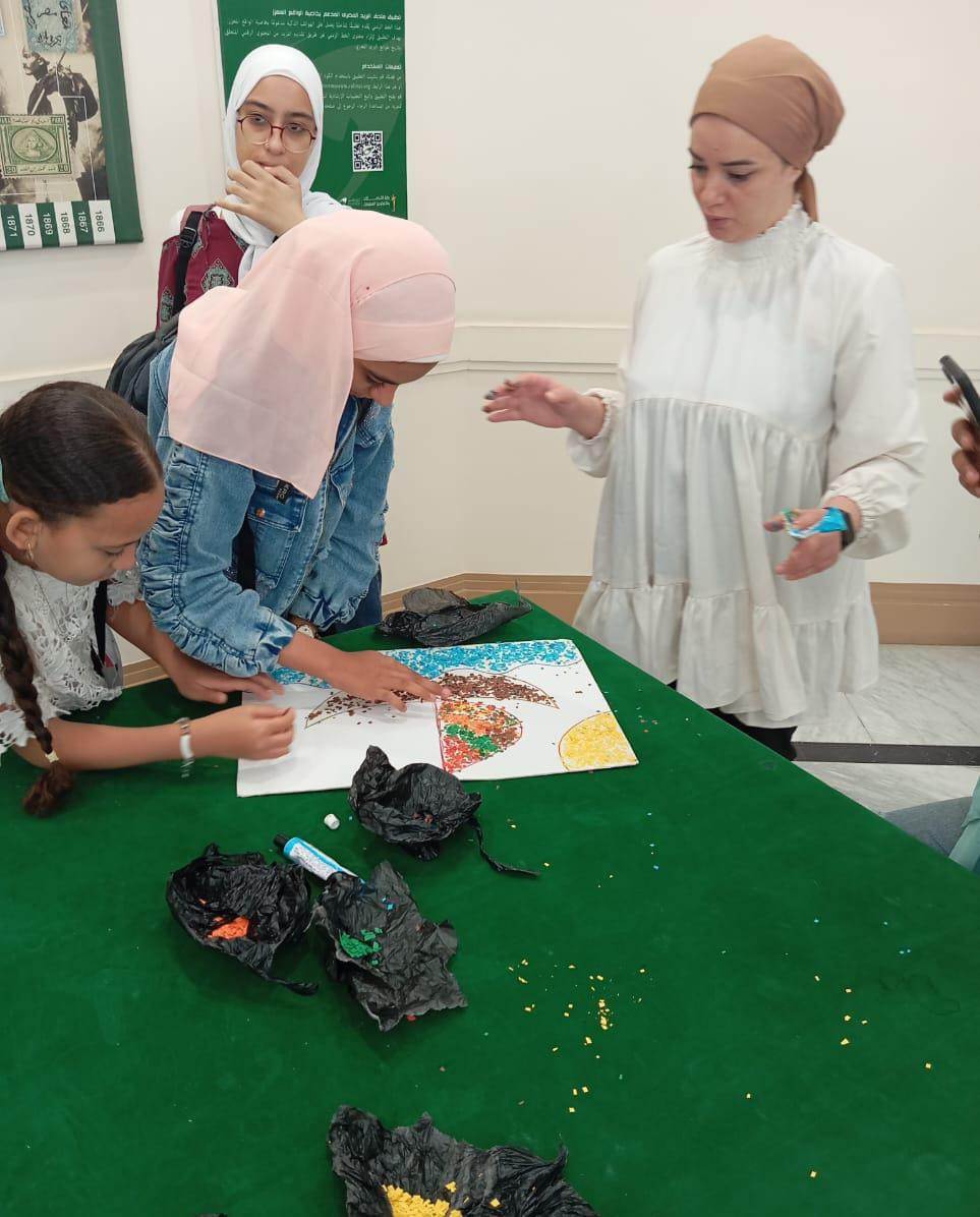 وفي إطار الجولة تم تقديم ورشة فنون تشكيلية للوحة تعبر عن منظر طبيعى باستخدام بقايا الخامات، كما أدارت الباحثة يمنى حسين حوارا مع الأطفال حول "أخطار استخدام البلاستيك على البيئة" أوضحت خلاله مخاطر التلوث التي يسببها التخلص من النفايات البلاستيكية على المياه والتربة.