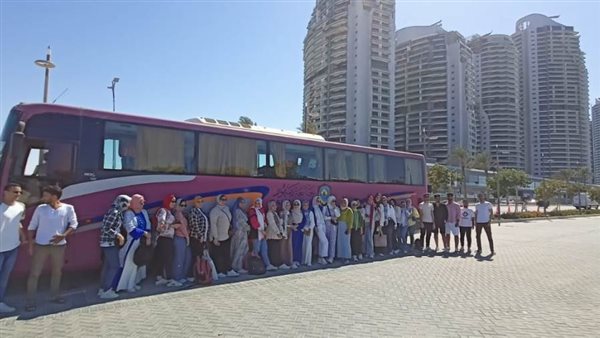 شاهد انطلاق ثاني الوفود الطلابية لجامعة دمنهور للمشاركة في مهرجان "العالم عالمين" بمدينة العلمين