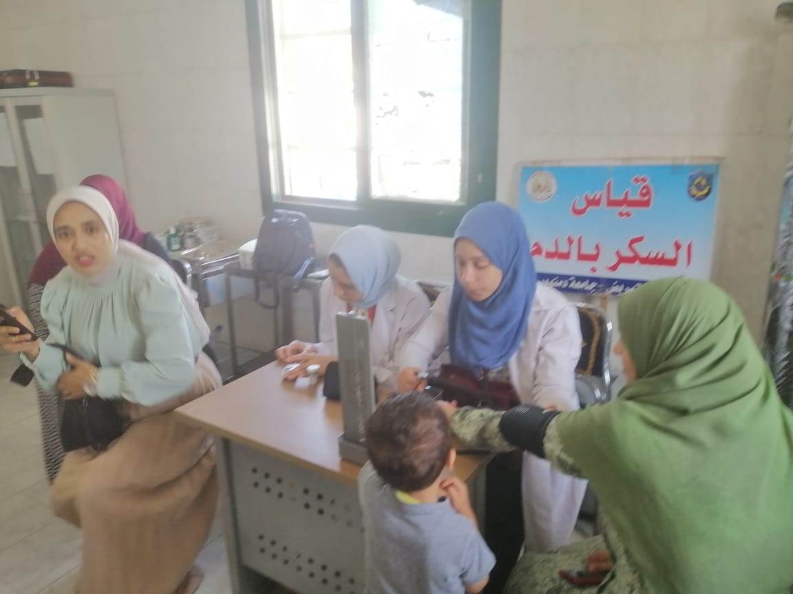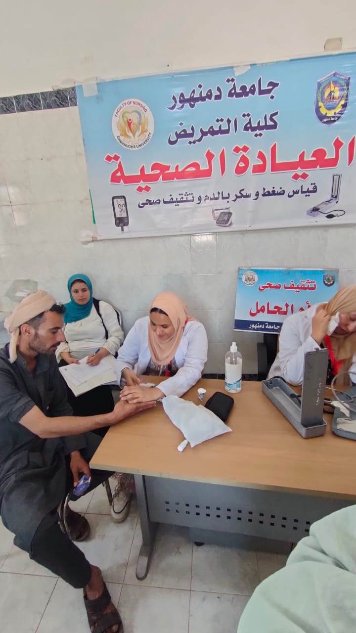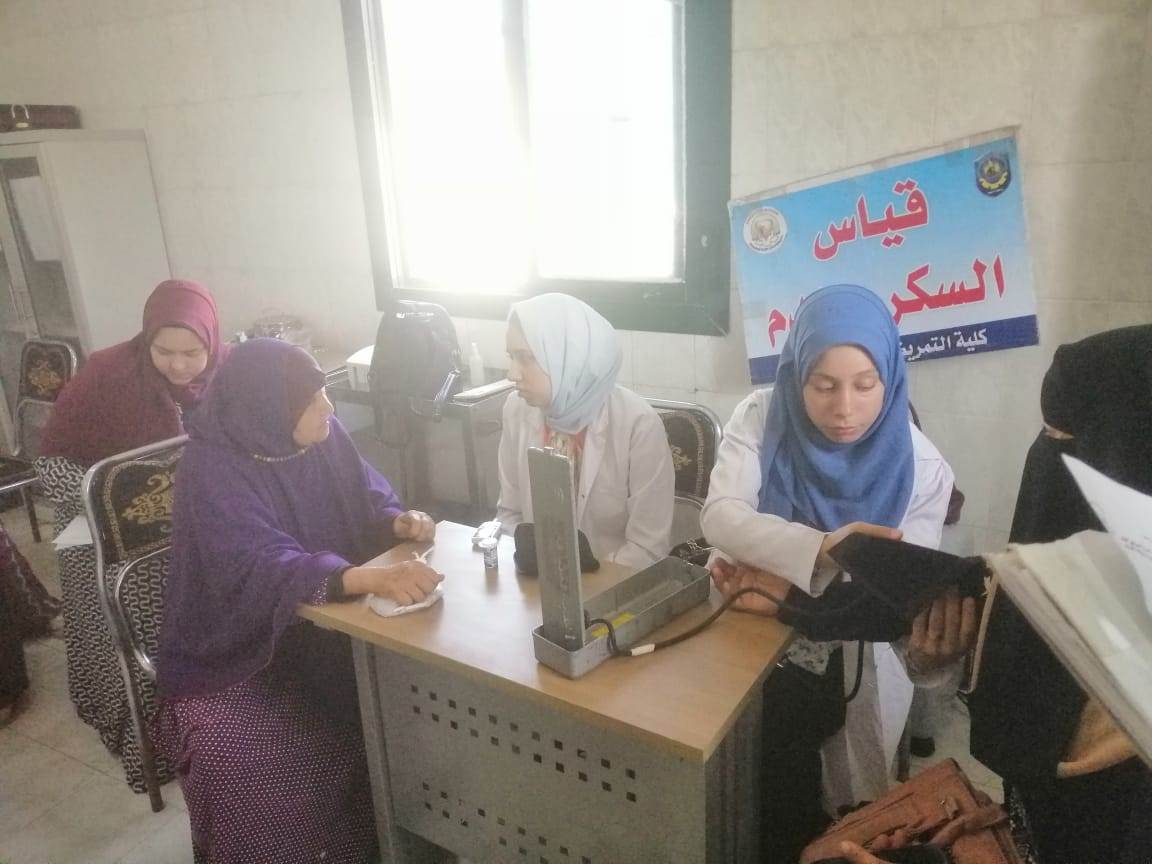 فيما شملت "القافلة الصحية" بإشراف وتنسيق الدكتورة عبير عبدالفتاح – وكيل كلية التمريض عمل مسح صحي بقياس ضغط الدم واكتشاف مرض السكري لـ (60) مواطنا، حيث تم اكتشاف معاناة (25) مواطنا من ضغط الدم المرتفع و (15) مواطن من مرض الداء السكري، بالإضافة إلى عمل تثقيف صحي لــ(30) سيدة عن سرطان الثدي وطرق اكتشافه وتعليمهم كيفية الفحص الذاتي للثدي باستخدام صور توضيحية، وتثقيف صحي لـ(30) سيدة عن قضية تنظيم الأسرة والوسائل المتاحة وكيفية استخدامها وشرح لأهم المميزات والعيوب عن كل وسيلة، و(30) سيدة عن رعاية الأم الحامل والطفل وجدول تطعيمات الطفل وأهمية الرضاعة الطبيعية، وكذا تثقيف صحي عن الأمراض المزمنة مثل الضغط والسكر والإلتهاب الكبدي الوبائي فيروس سي لـ (27) مواطنا، و (20) مواطنا عن نمط الحياه الصحي والإقلاع عن التدخين، ومكافحة التعاطى وعلاج الإدمان، بالإضافة إلى تدريب (30) مواطنا من أهل القرية على "لإسعافات الأولية"، وشرح حالات الاختناق والجروح والكسور والحروق وكيفية التعامل معها.