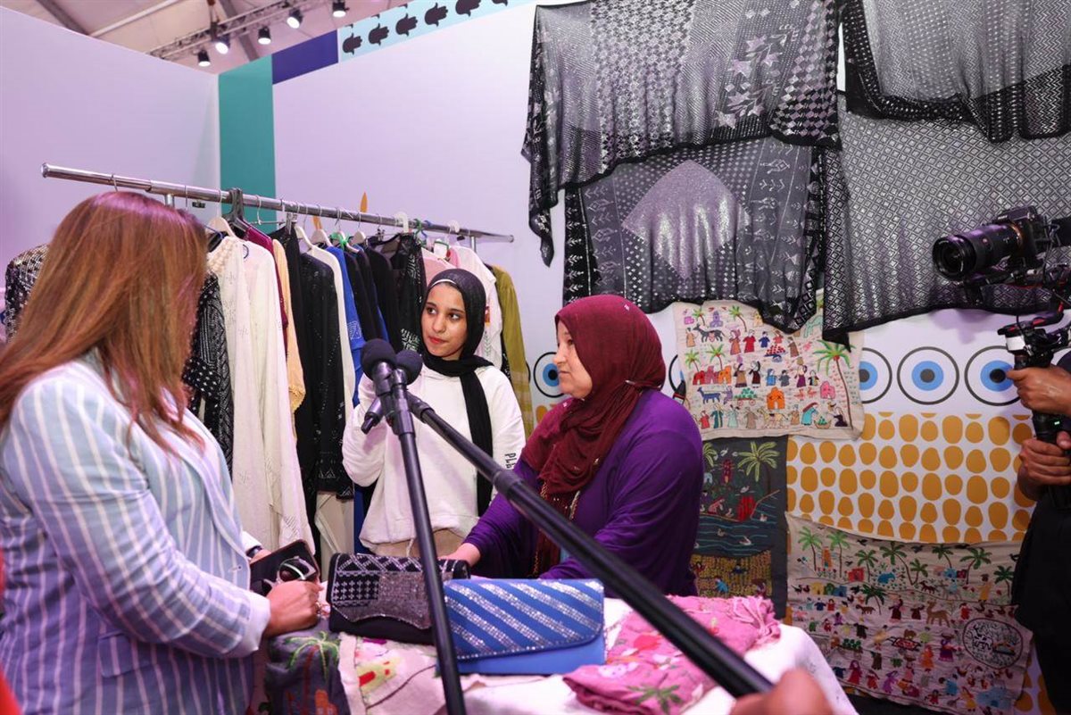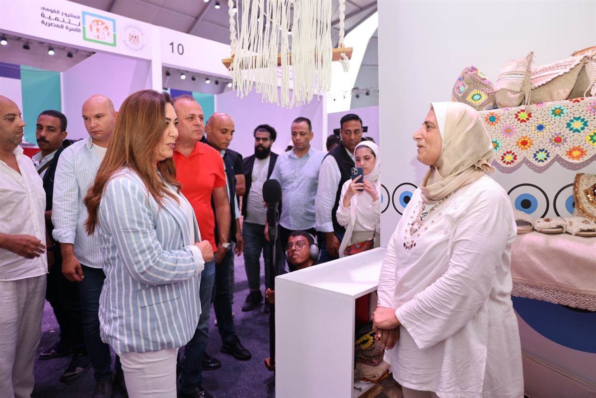 وأبدت الدكتورة منال عوض إعجابها بالمنتجات المعروضة بالمعرض والتي صنعت بأيدي سيدات مصريات من مختلف المحافظات ضمن المشروع القومي لتنمية الأسرة المصرية لحرف التطريز السيناوي، التلي، الرسم على القماش، خوص، خياطة وتطريز، حرف الكروشيه وحُلي.