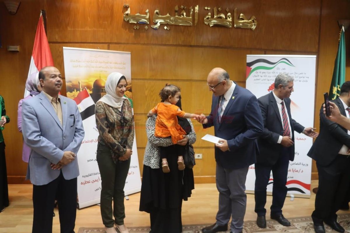 محافظ القليوبية يشارك تكريم 49 أسرة فلسطينية المتضررة من أحداث العدوان على غزة