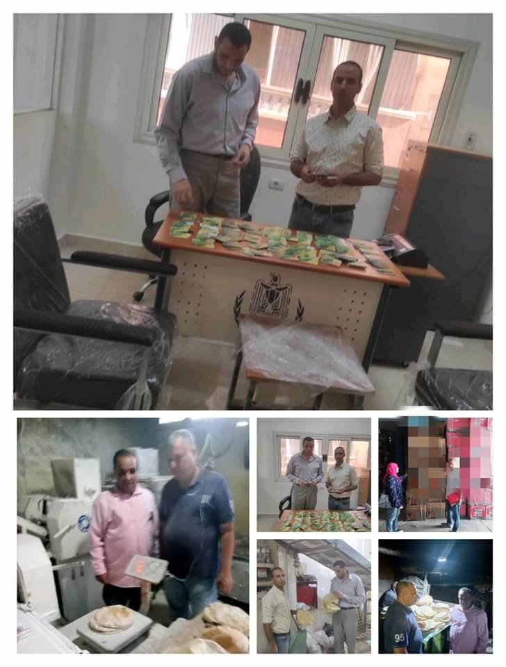 وفي حملة مماثلة قادها المهندس سمير البلكيمى وكيل مديرية التموين تم ضبط 3 مخابز قاموا بالتصرف فى كمية قدرها 50 شيكاره دقيق بلدى مدعم زنة الشيكارة 50 كيلو بإجمالي وزن 2,5 طن دقيق بلدي مدعم قام أصحاب المخابز ببيعهم بالسوق السوداء وتحقيق كسب غير مشروع بالإضافة إلى ضبط أحد أصحاب المخابز قام بتجميع كمية قدرها 8 شيكاره دقيق بلدي مدعم زنة الشيكارة 50 كيلو بإجمالي وزن 400 كيلو بهدف الاتجار بها فى السوق السوداء وضبط أحد أصحاب المخابز قام بالتوقف عن الإنتاج دون اذن مسبق أو عذر قهرى وجارى مراجعة وجود مبيعات وهمية من عدمه، 18 مخبزا قامت بإنتاج خبز ناقص الوزن حتى 19 جراما للرغيف ولعدم الإعلان عن مواعيد العمل بالمخبز ووزن وسعر الرغيف .