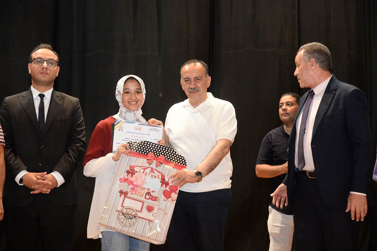 وسلم المحافظ الدروع وشهادات التقدير لمديري الإدارات التعلمية وبعض مديري المدارس المتميزين، ذلك بالإضافة إلى تكريم الطلاب والطالبات أوائل الشهادات بمختلف المراحل الدراسية وطلاب الدمج المتفوقين وسلمهم شهادات التقدير تقديراً لهم ولتفوقهم الدراسي، كما كرم المحافظ، أوائل الشهادات الثانوية العامة والفنية الفائزين بالمراكز الأولى على مستوى الجمهورية .