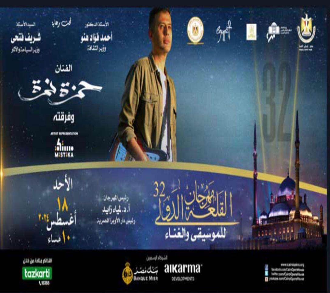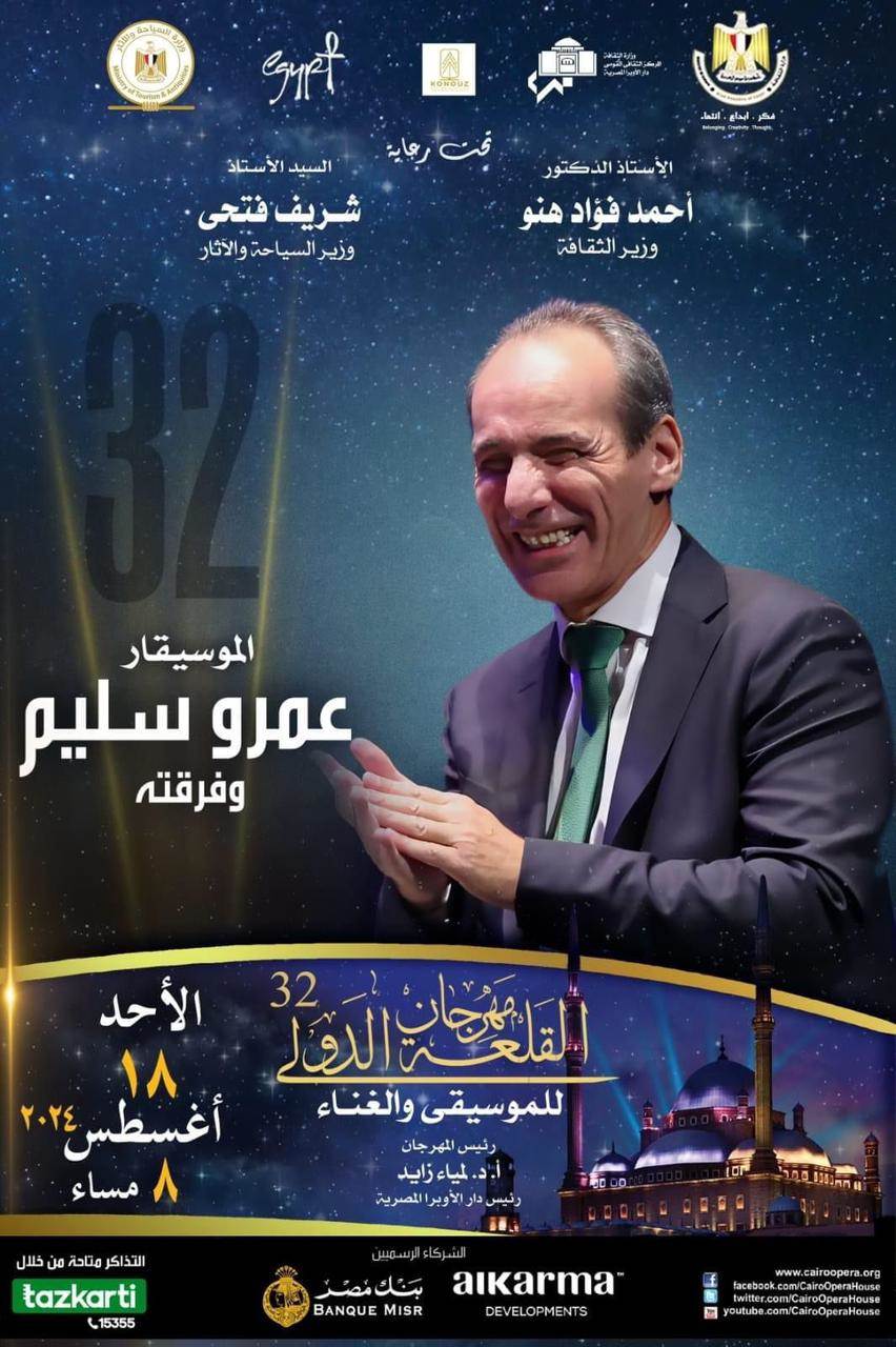 تواصل دار الأوبرا المصرية برئاسة الدكتورة لمياء زايد في تقديم فعاليات الدورة ال ٣٢ من مهرجان القلعة الدولي للموسيقى والغناء بحفلين متتاليين يقاما مساء الأحد ١٨ اغسطس 2024 على مسرح المحكى.