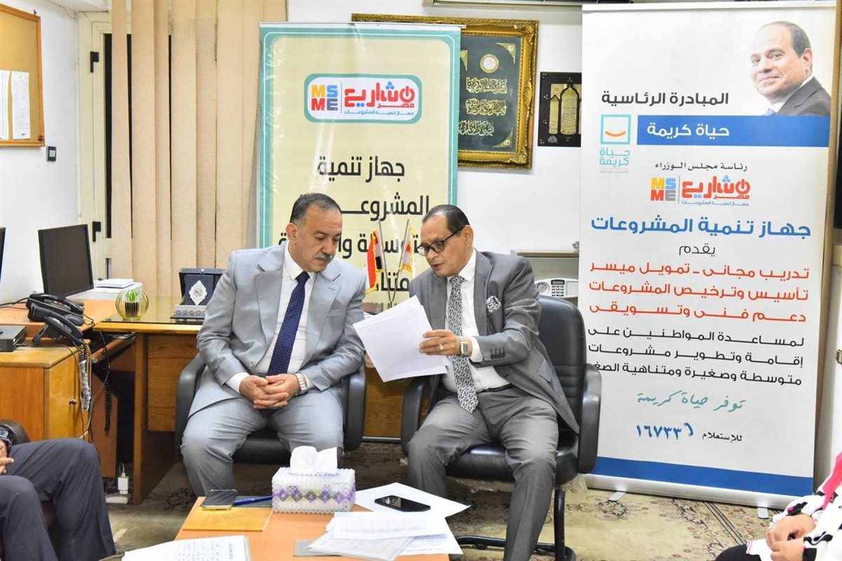 كما إلتقى المحافظ – خلال زيارته لمقر الجهاز –رئيس الفرع ومديري الإدارات والأقسام، لاستعراض بعض المشروعات والأنشطة التي ينفذها الجهاز والخدمات المالية وغير المالية التي يقدمها لاصحاب المشروعات ومؤسسات المجتمع المدنى والأسر المنتجة ودعم أصحاب المشروعات والمرأة المعيلة موجهاً بضرورة تشبيك كافة الجهات لدعم الشباب والخريجين وأصحاب المشروعات ومساعدتهم فى تسويق منتجاتهم واستخراج تراخيص المحال والمشروعات.