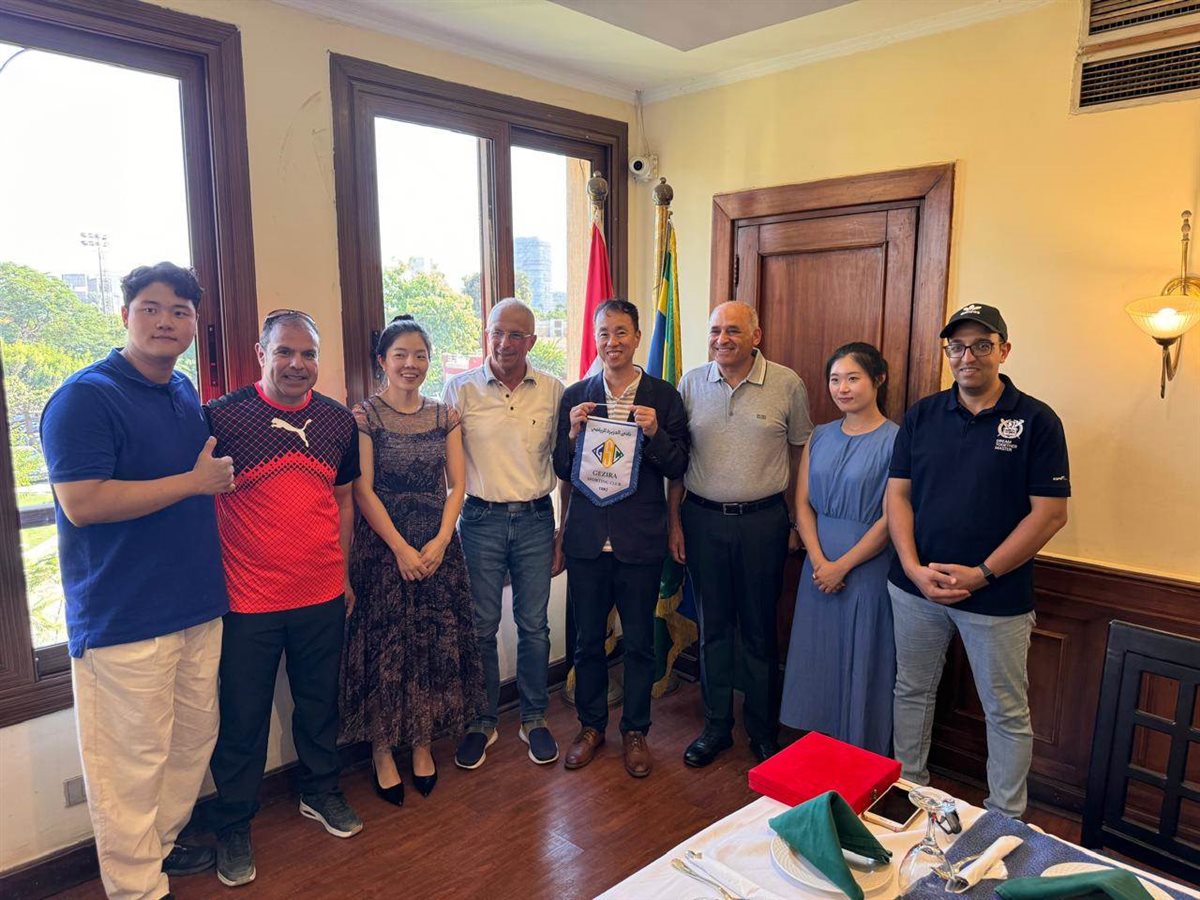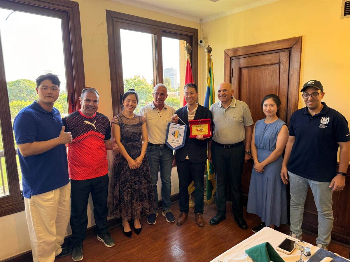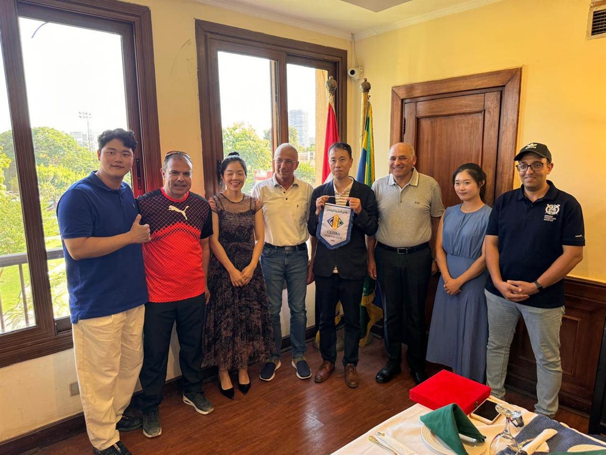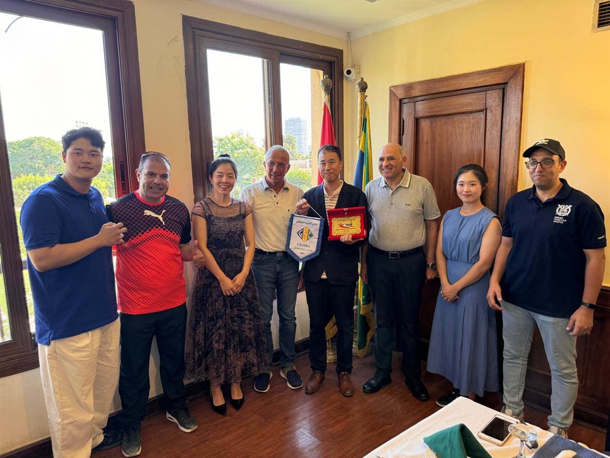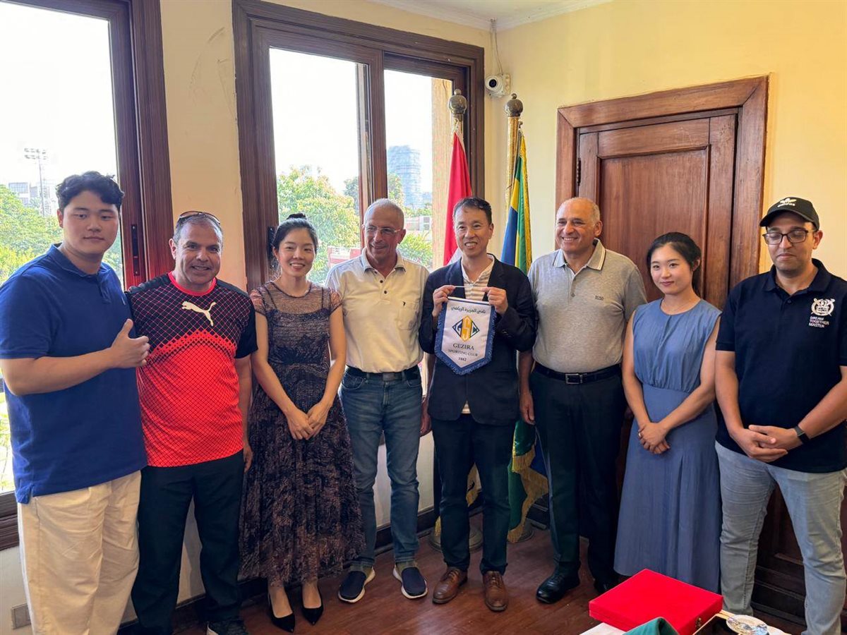 استقبل المستشار عمرو حسين -رئيس الاتحادين العربي الأفريقي لكرة السرعة الوفد الكوري الجنوبى فى نادى الجزيرة الرياضي، وذلك لبحث أوجه التعاون الرياضي بين مصر وكوريا الجنوبية في لعبة كرة السرعة.