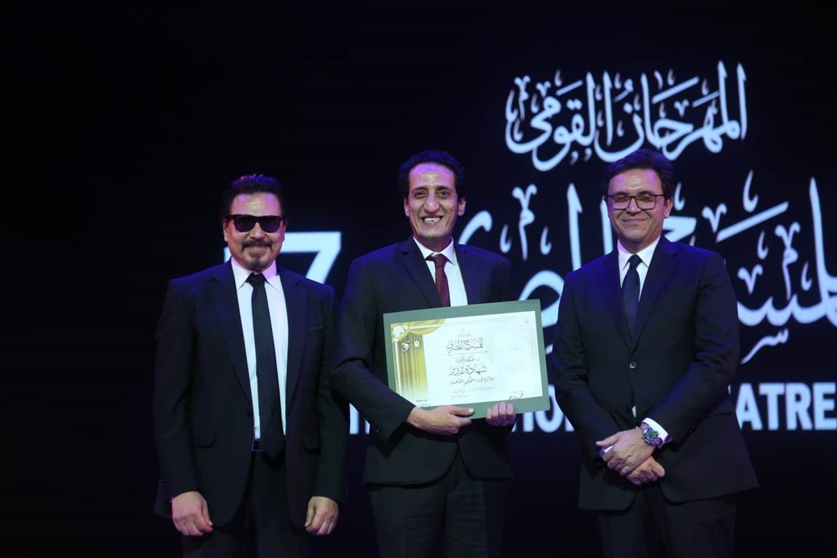 ثم قام وزير الثقافة والفنان محمد رياض رئيس المهرجان بتكريم الفائزين، حيث جاءت قائمة جوائز المهرجان القومي للمسرح في دورته السابعة عشرة كالتالي: