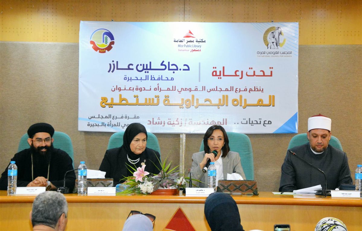 جاء ذلك خلال حضورها فعاليات الندوة التثقيفية التي نظمها فرع المجلس القومى للمرأة برئاسة المهندسة ذكية رشاد تحت عنوان "المرأة البحراوية تستطيع" وبحضور أعضاء المجلس القومي للمرأة والقيادات الدينية وممثلي الأوقاف والكنيسة وسفيرات المحبة والسلام والواعظات، وذلك بمكتبة مصر العامة بدمنهور.