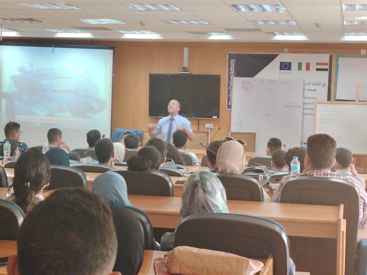 وأشار إلى أن برنامج زيارة الطلاب يتضمن العديد من المحاور المهمة لهذا التخصص ومنها إجراءات التخليص الجمركي، وأنواع الحاويات، والنقل متعدد الوسائط، والوكيل الملاحي، وكيفية تقدير القيمة للأغراض الجمركية والضريبة الجمركية، وإجراءات الاستيراد والتصدير، وكذا تم عمل نموذج محاكاة بصرية لأنواع الحاويات المختلفة.