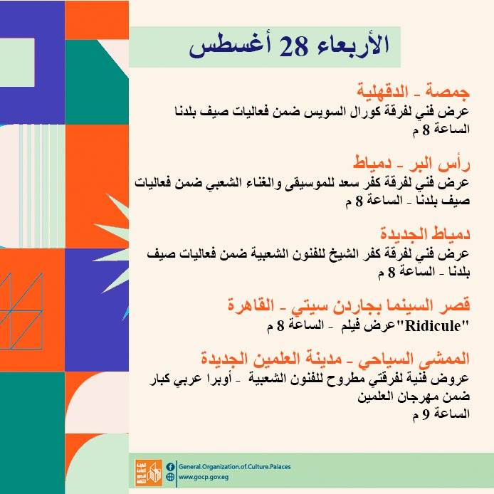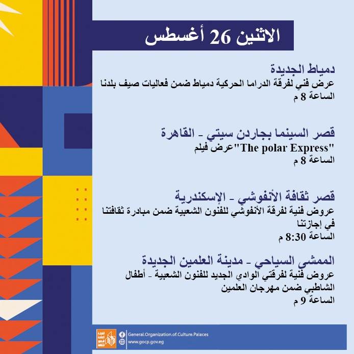 قصور الثقافة.. عروض متنوعة في مهرجان العلمين وختام دوري المكتبات