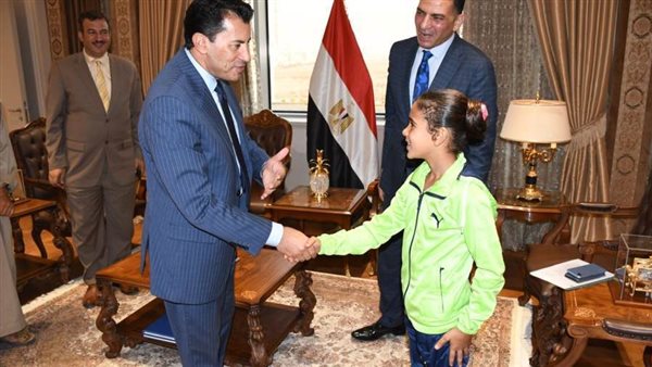 كرم اليوم الدكتور أشرف صبحي وزير الشباب والرياضة الطفلة ملك مصطفي محي والملقبة بحريفة الشارع وابنه مدينة بلبيس بمحافظة الشرقية.