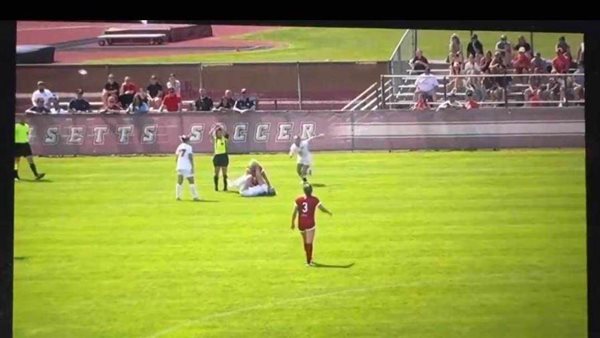 جاءت أشلي لاموند لالتقاط الكرة، التي كانت عند قدمي اللاعبة جيا جيرمان، وكانت لاعبة فريق سكارليت نايتس تعترض على ذلك بوضوح.