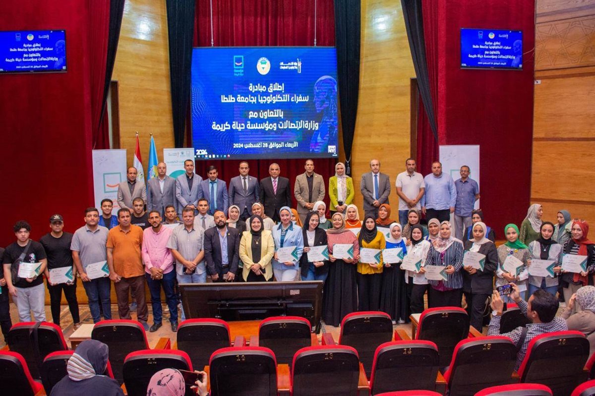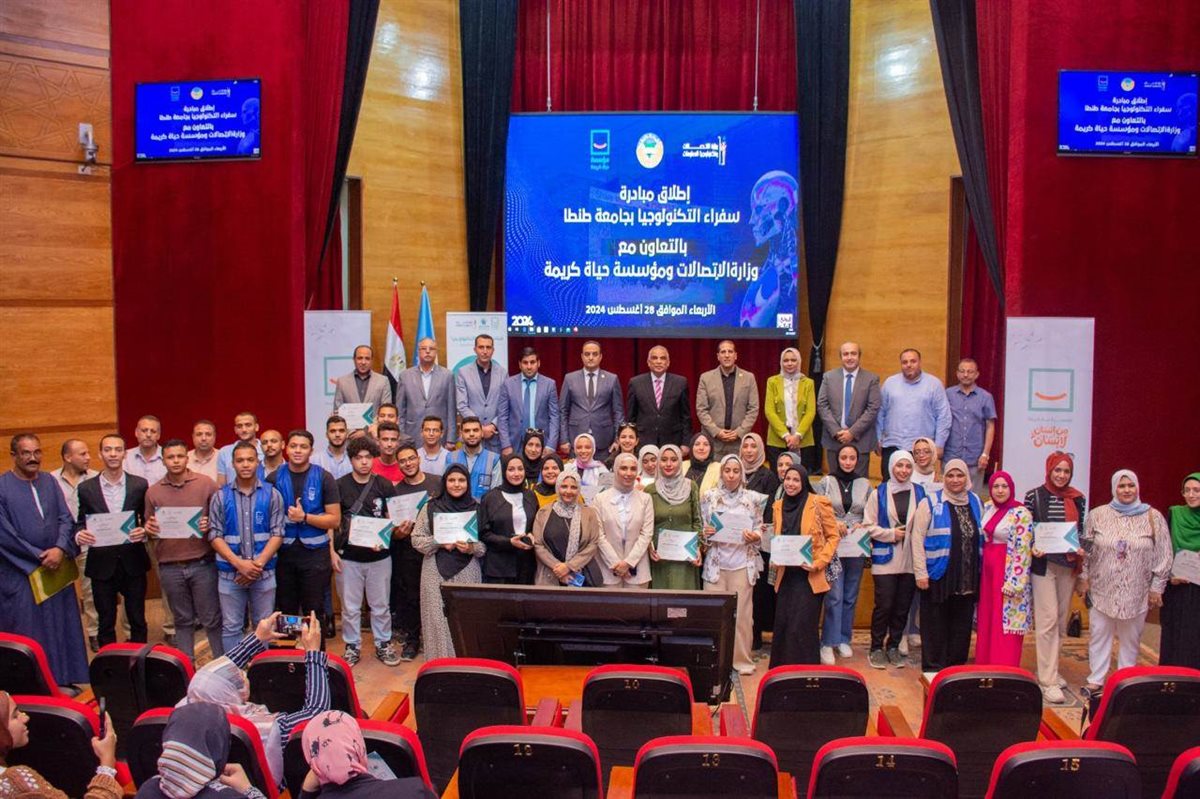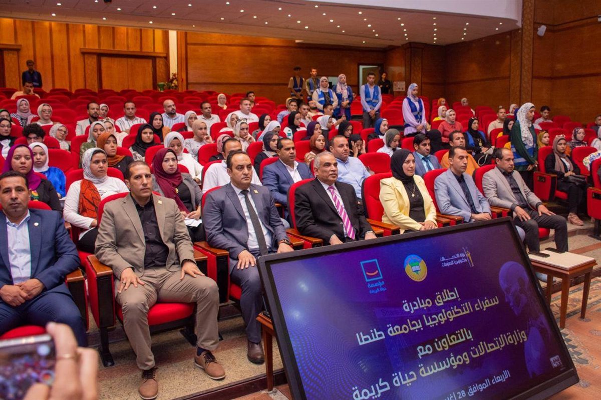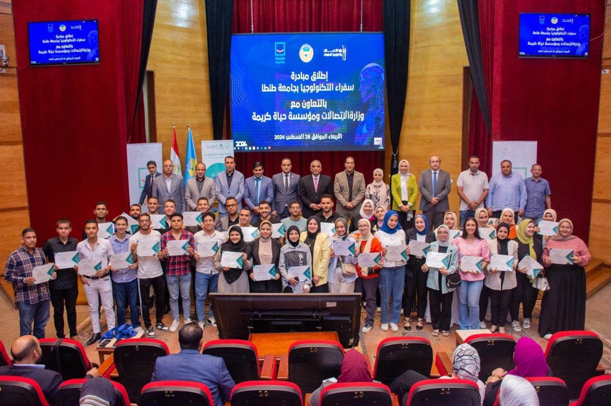 شهدت جامعة طنطا، حفل ختام فاعليات مبادرة "سفراء التكنولوجيا" والتي نظمتها وزارة الاتصالات بالتعاون مع مؤسسة “حياة كريمة "، وتخللها تخريج 145 سفيرا للتكنولوجيا، وذلك بحضور الدكتور محمد حسين القائم بعمل رئيس جامعة طنطا، والعقيد طه عجلان مدير إقليم الدلتا لمؤسسة حياة كريمة، و ممثلي هيئة مكتب مؤسسة حياة كريمة بالغربية، وممثلي وزارة الاتصالات وتكنولوجيا المعلومات، ومديري المراكز الرئيسية والوحدات بالجامعة، وعدد من المتطوعين بمبادرة حياة كريمة والطلاب.
