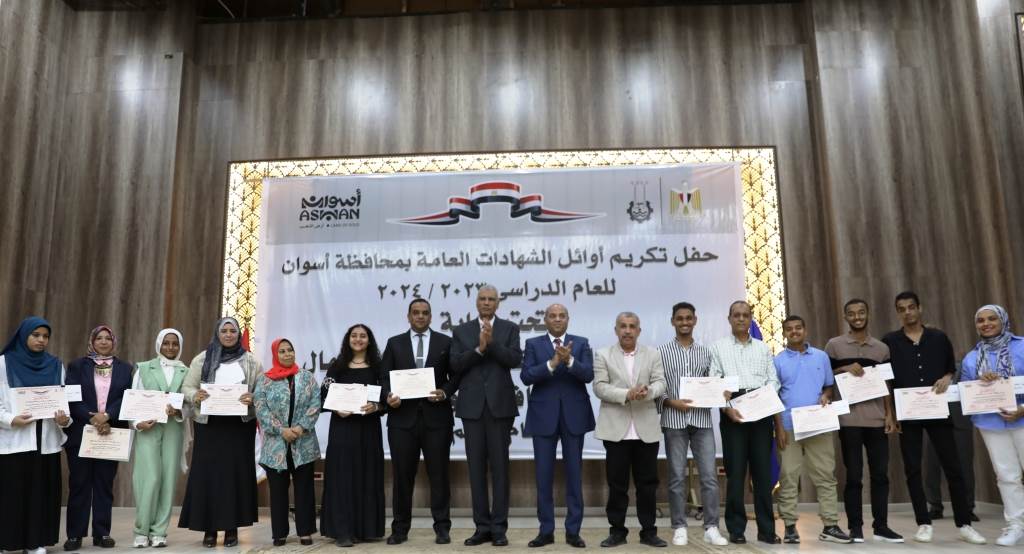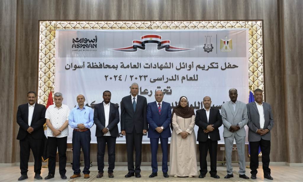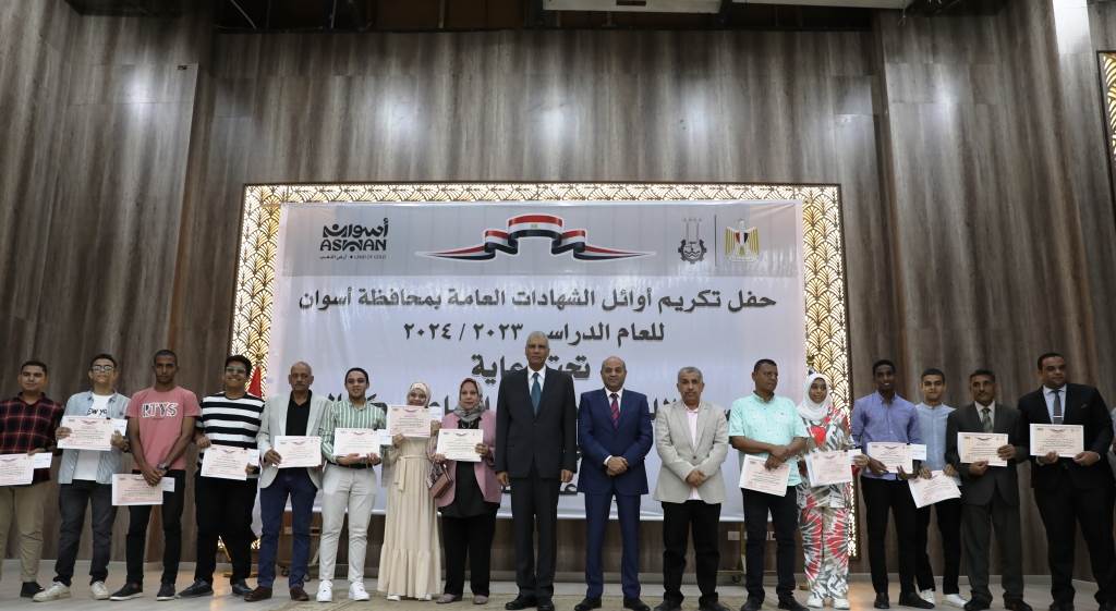 محافظ أسوان يكرم أوائل الشهادات الإعدادية والتربية الخاصة والثانوي العام والفني