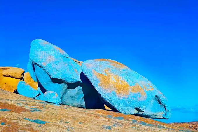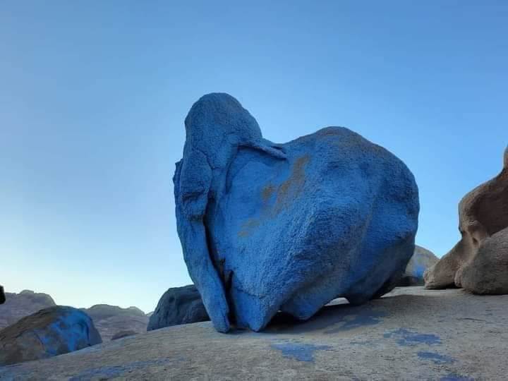 قد يتساءل البعض عن سبب هذا اللون الأزرق المميز، وفي الحقيقة هذه الصخور لم تكن زرقاء اللون بطبيعتها، بل تم طلاؤها يدويًا باللون الأزرق في عام 1980 من قبل الفنان البلجيكي جان فيرامي.