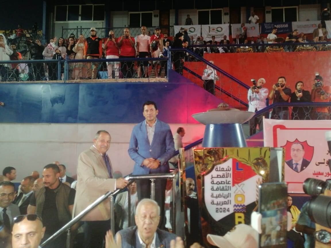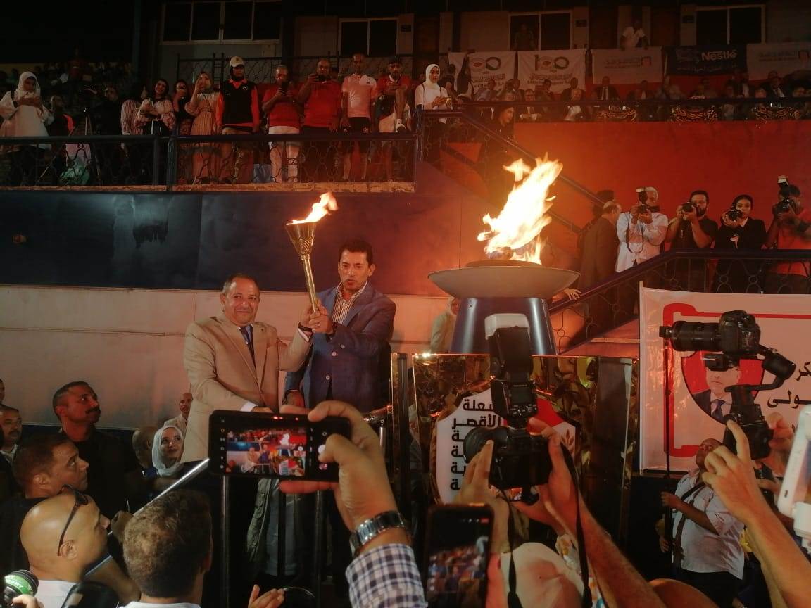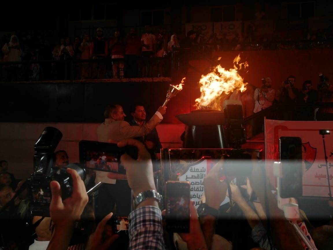 اضاء الدكتور أشرف صبحي وزير الشباب والرياضة شعلة الأقصر عاصمة الثقافة الرياضة العربية، واشتعلت نيران الشعلة لتعلن عن انطلاق البطولة، وذلك بحضور اللواء محب حبشي محافظ بورسعيد، والدكتور محمود حسين رئيس لجنة الشباب والرياضة بمجلس النواب، ومحمد عبد العزيز مدير مديرية الشباب والرياضة ببورسعيد.