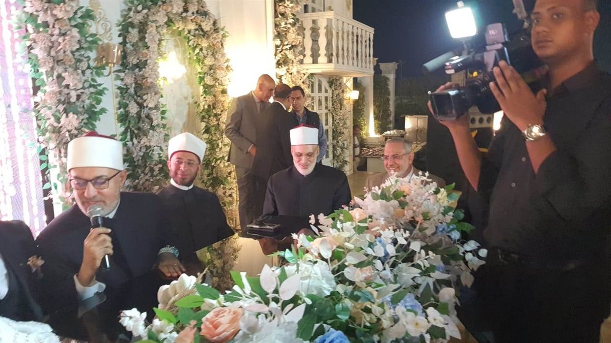 وعقد قران العروسين الدكتور نظير عياد مفتي الجمهورية، وشهد عقد القران والاشهار الدكتور أسامة الأزهري وزير الأوقاف والدكتور عباس شومان رئيس مجلس إدارة المنظمة العالمية لخريجي الأزهر والدكتور عبد المنعم فؤاد المشرف العام على الأنشطة العلمية للرواق الأزهري والدكتور هاني عودة مدير عام الجامع الأزهر والدكتور محمود الصاوي ولفيف من العلماء والأساتذة.