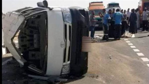 مصرع شخص وإصابة 8 آخرين بحادث انقلاب ميكروباص بصحراوي النوبارية
