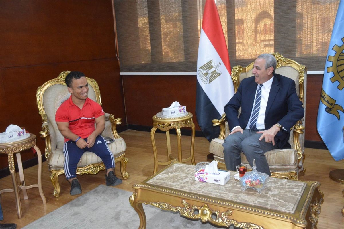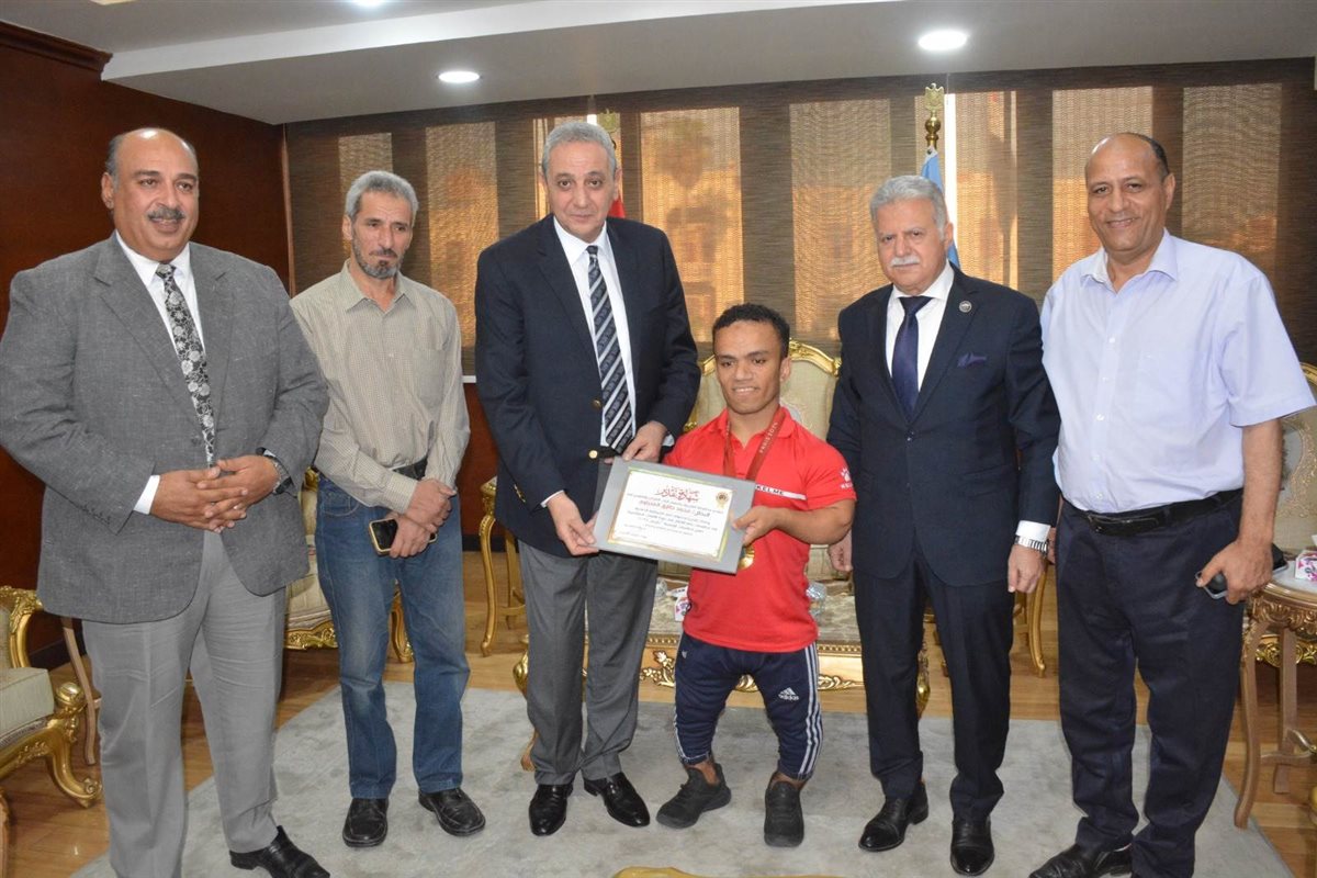 بالصور.. محافظ الغربية يكرم محمد المنياوي الحاصل على ذهبية العالم لرفع الأثقال البارالمبية