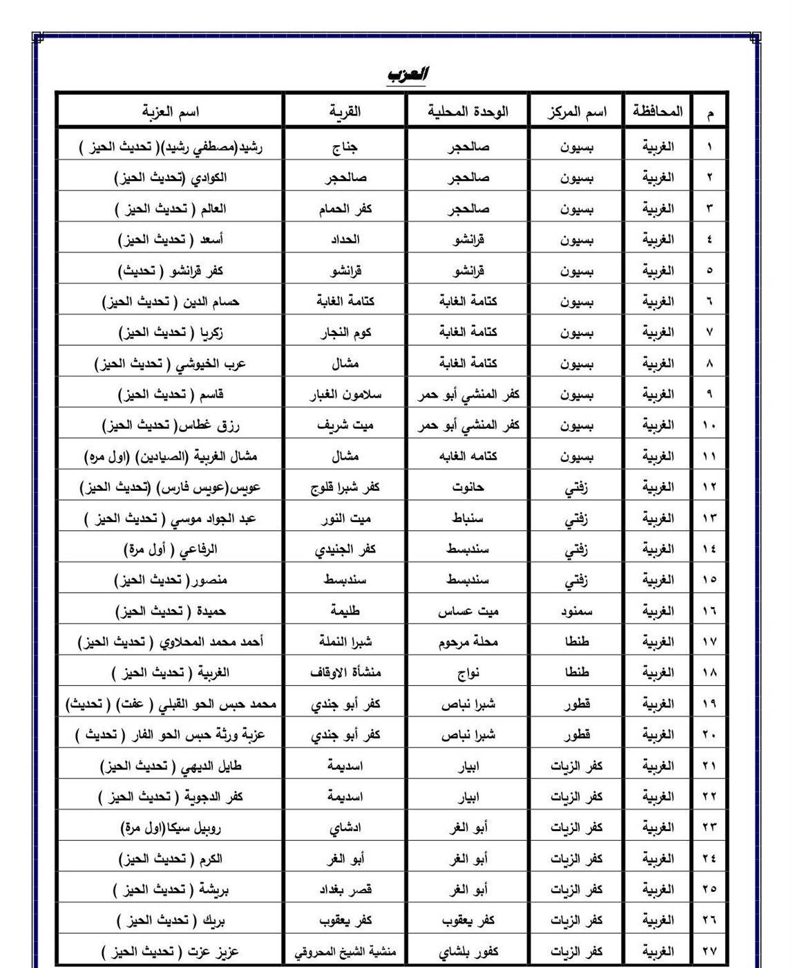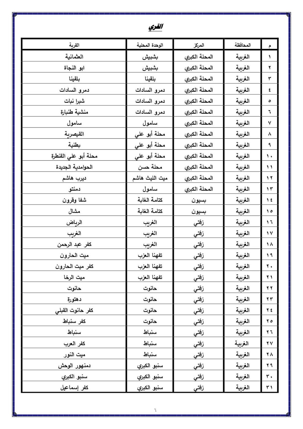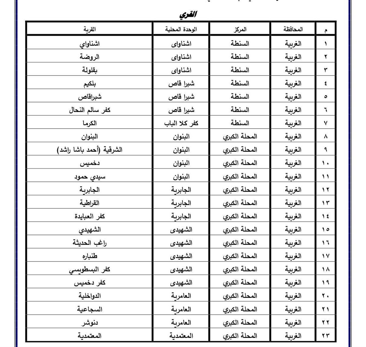 اعتمد اللواء أشرف الجندي محافظ الغربية ، الأحوزه العمرانية لعدد ٦٢ قرية تابعة لمراكز المحلة الكبري - بسيون - زفتى - طنطا - كفر الزيات، وعدد ۲۷ عزبة تابعة لمراكز بسيون - زفتى - سمنود - طنطا - قطور - كفر الزيات ، بالإضافة إلى تحديث واعتماد الأحوزة العمرانية لعدد ۷۹ قرية تابعه لمراكز السنطة المحلة الكبرى - زفتى - سمنود - طنطا - كفر الزيات ، وعدد ۱۳ عزبة تابعة لمركز المحلة الكبرى.