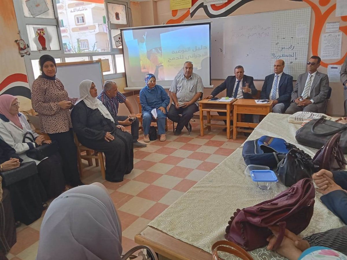 وتابعوا إجراءات وآليات توزيع الكثافات الطلابية والقرارات والتعليمات الوزارية الخاصة بانتظام وانضباط العام الدراسي وسد العجز في هيئة التدريس.مؤكدين على حسن استقبال الطلاب ومعاملتهم وتنظيم دخولهم وخروجهم مع المتابعة والإشراف من قبل المعلمين كما تابعوا الانشطة الطلابية التي تساهم في تنمية مهارات وقدرات الطلاب واطمانواعلى الانضباط الإداري والالتزام باللوائح الإدارية والزي المدرسي بالمدارس.وفي مدرسة البريجات الإعدادية المشتركة اجتمع يوسف الديب بمشرفي المواد وحثهم على ضرورة الاستفادة من خبرات المعلمين الأساسيين برفع نصابهم في سد العجز والاستفادة من خبراتهم بالمدارس الأخرى .هدفت الجولة إلى التأكد من انتظام الدراسة فى مختلف المراحل التعليمية بدءا من المرحلة الابتدائية حتى المرحلة الثانوية والوقوف على حسن وانتظام العملية التعليمية وتحقيق الانضباط الإداري والتعليمي والتاكد من قوائم الفصول وسجلات الحضور والانصراف وتفعيل سجل الزيارات وتسجيل المتابعات به اولا بأول وسرعة إرسال أي شكاوى أو معوقات لسرعة إيجاد الحلول كما هدفت الجولة الميدانية اليوم إلى متابعة انتظام الدراسة وحل المشكلات وطرح الحلول المناسبة للمشكلات التي واجهت المدارس في الأيام الأولى وذلك في إطار الجهود المبذولة لتوفير بيئة تعليمية مناسبة ودعم أبنائنا الطلاب وتقديم أفضل الخدمات التعليمية لهم .وأكد يوسف الديب وكيل الوزارة في ختام جولته مجددا على مواصلة جولاته الميدانية على كافة المدارس والإدارات التعليمية للاطمئنان على انتظام الدراسة والتذليل الفوري لأي عقبات تعرقل سير العملية التعليمية لضمان تقديم منتج تربوى متميز ومتطور لأبنائنا الطلاب.